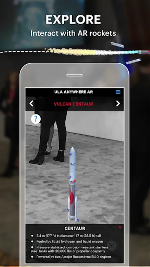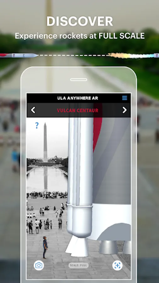 Using Augmented Reality, you’ll have the ability to place rockets in your space – wherever you are – and up to full scale. Stand back and take-in a full size rocket, taller than a 20-story building. Then let your friends know you’re a rocket scientist by sharing your photos taken with ULA’s Vulcan Centaur, Atlas V and Delta IV rockets.