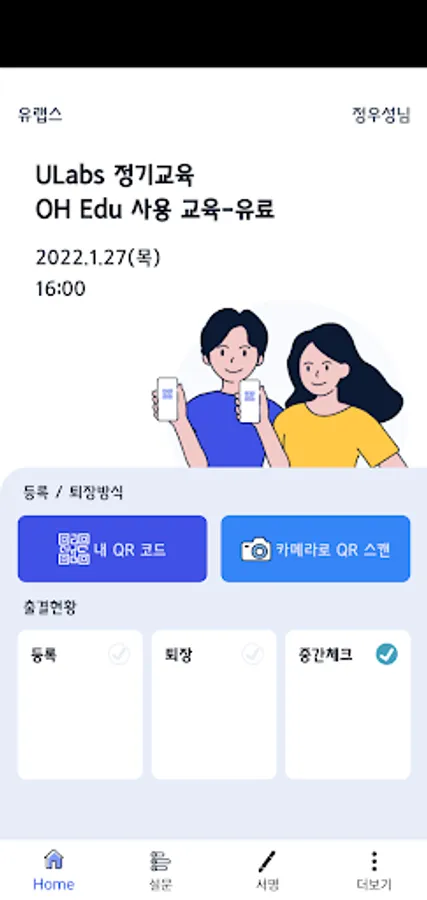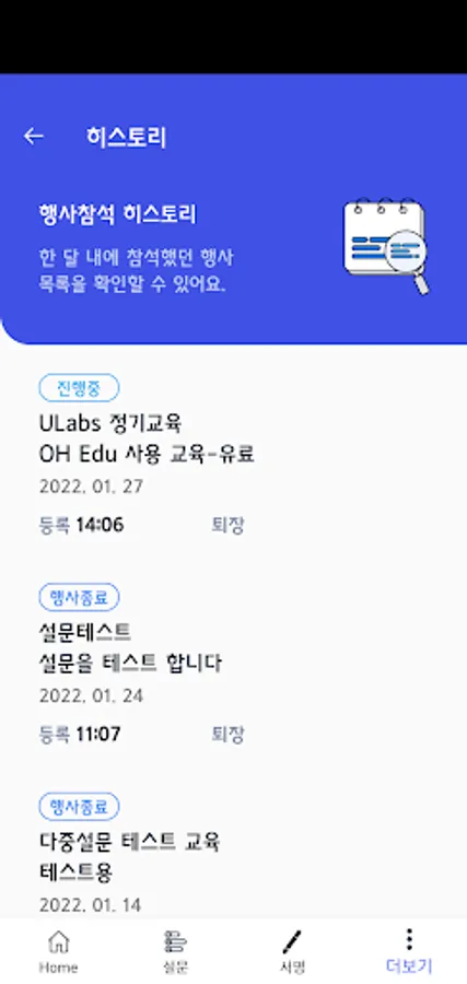 - Education, event registration and exit processing are possible only by installing the application, and at the same time, you can immediately print out name tags and various prints, and you can also issue prints such as online and offline certificates or parking tickets in real time automatically when checking out.