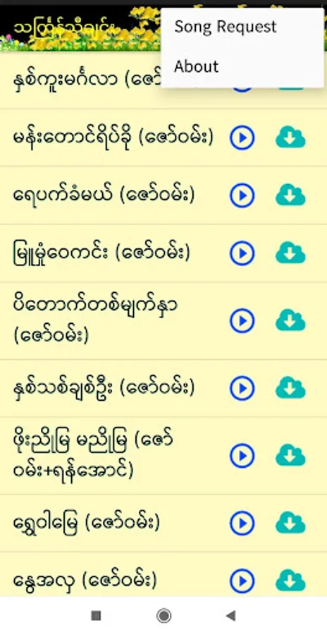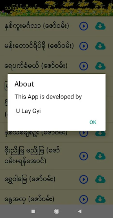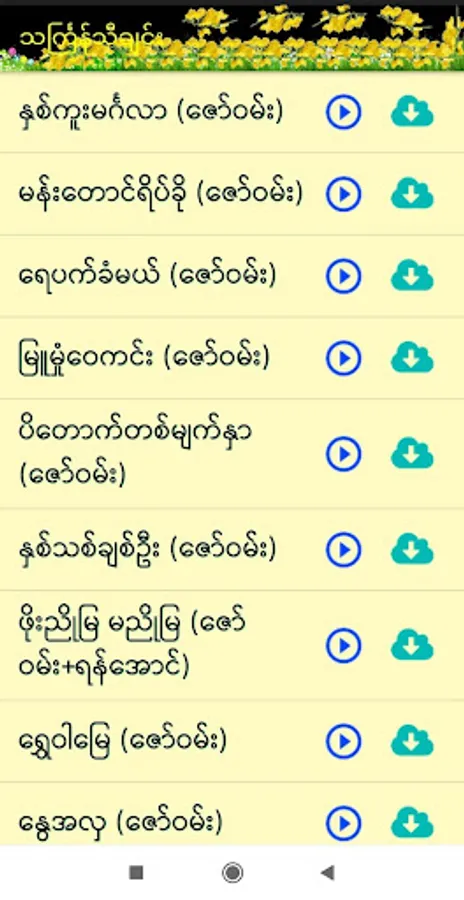 This app contained that Myanmar online Thingyan songs.All of songs can download and directly play from server.