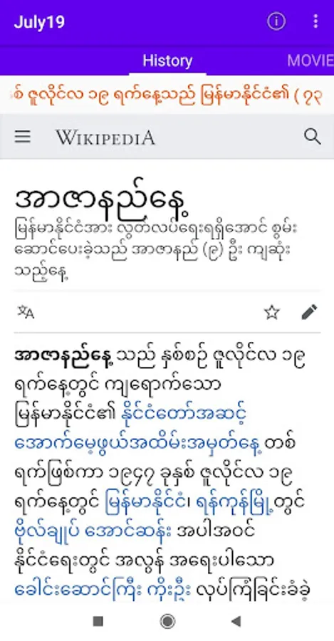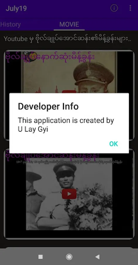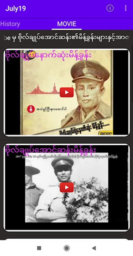 This application uses youtube video and wiki weblink for Burmese Martyrs' Day.