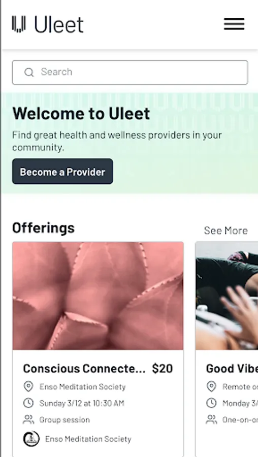 Discover the future of your wellbeing with Uleet. Uleet is your all-in-one wellness marketplace, offering an intuitive platform to explore, connect, and engage with holistic wellness providers. From yoga and fitness training to nutrition consultations and massage therapy, our carefully curated selection caters to all your wellbeing needs.