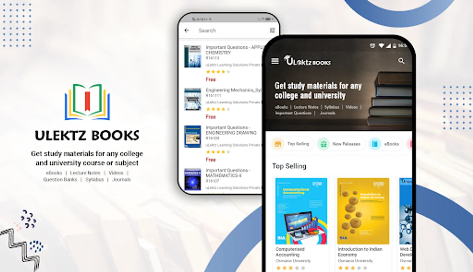 uLektz Books: Provides thousands of interactive and engaging ebooks with embedded videos and important questions for various subjects and streams of engineering, technology, science, management and arts. These ebooks are created as per university syllabus by a team of in-house subject matter experts in collaboration with various reputed faculty members and educational institutions from India and abroad. These ebooks are created using latest technologies and international publishing standards to support BYOD - accessible via any device - Laptop, Desktop, Smartphone and Tablets from anywhere and anytime both online and offline (without Internet connectivity).