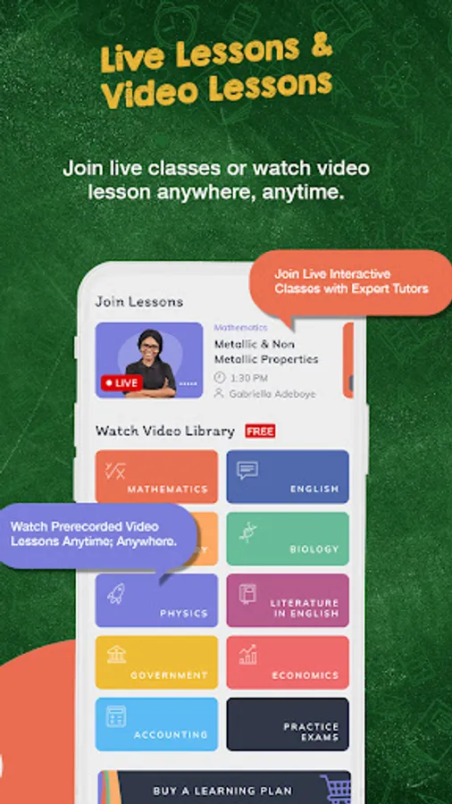 uLesson is a free educational learning app for Primary, Secondary School learners and candidates preparing for WAEC, GCSE, A levels, BECE, GCE, NECO, JAMB and other National exams.