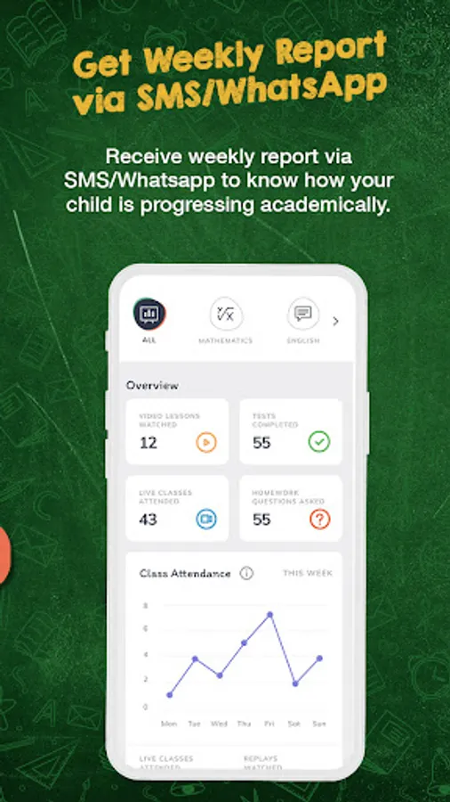 Receive weekly report via SMS/WhatsApp to know how your child is progressing academically