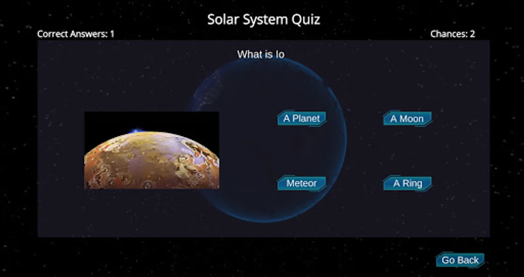 In the latest update, the Solar System quiz has been implemented. Answer the questions about our solar system and learn about the amazing facts about the solar system.