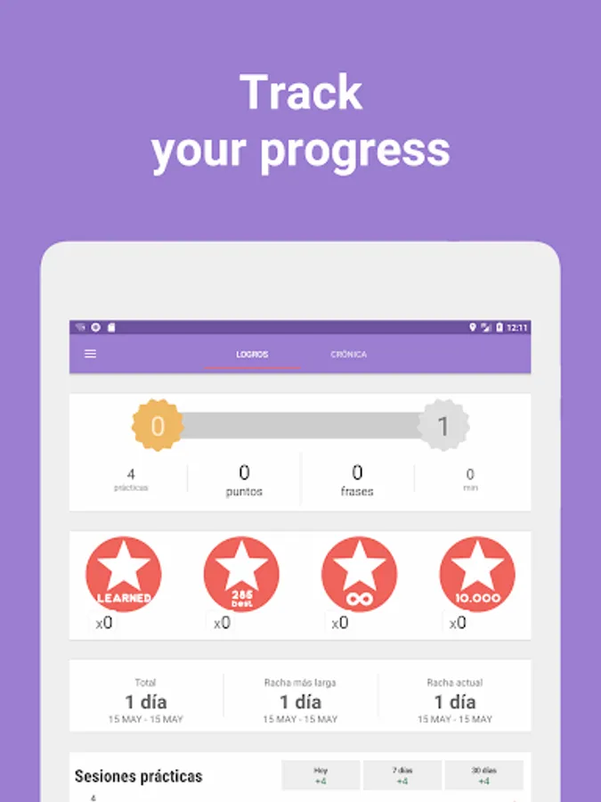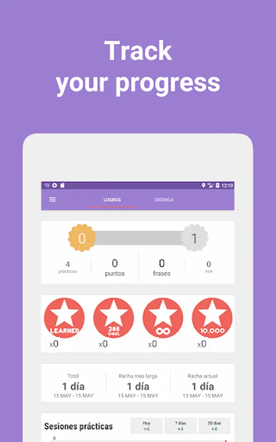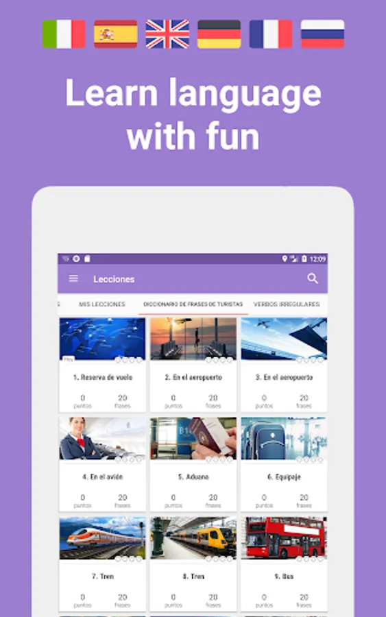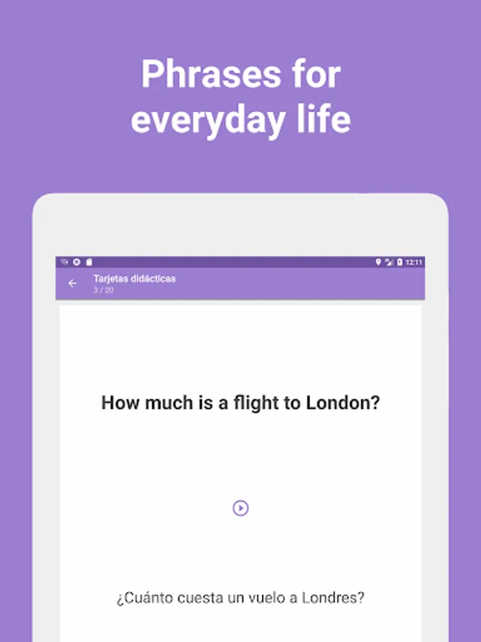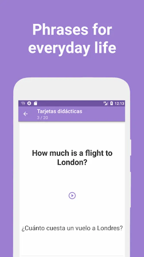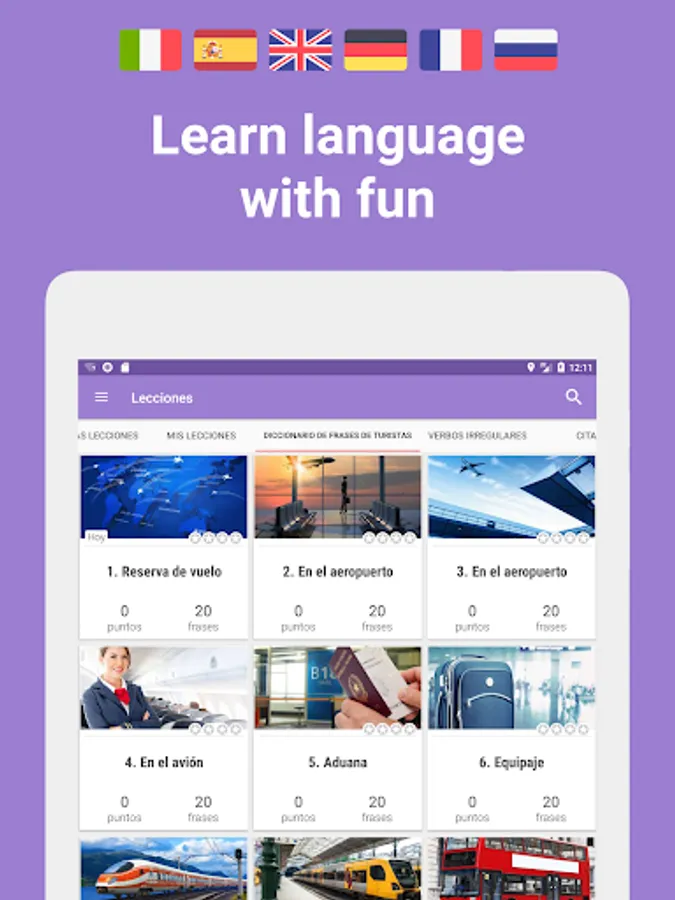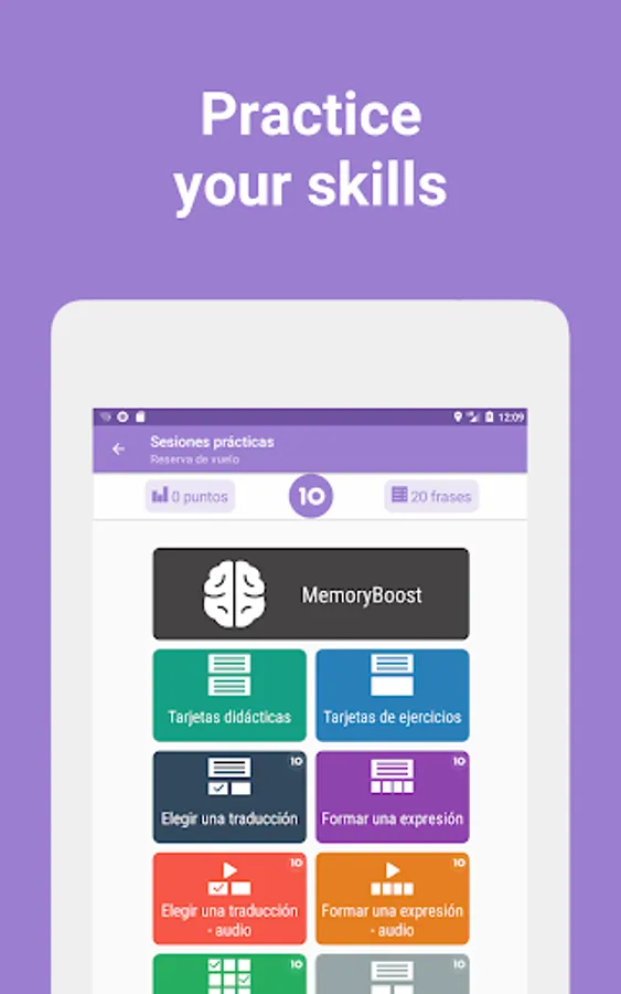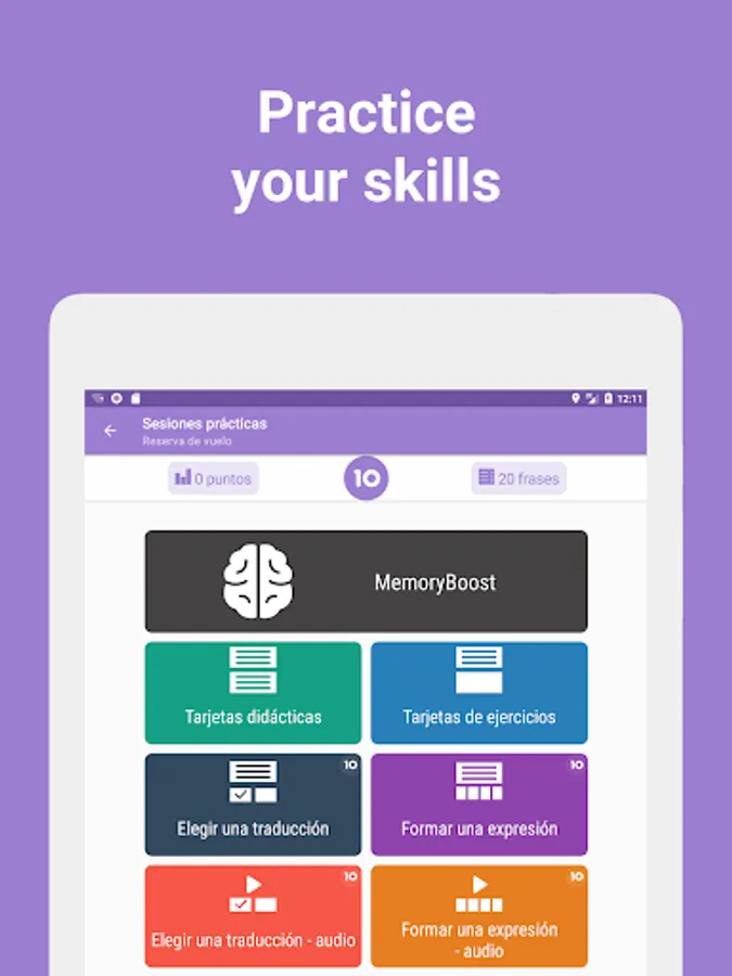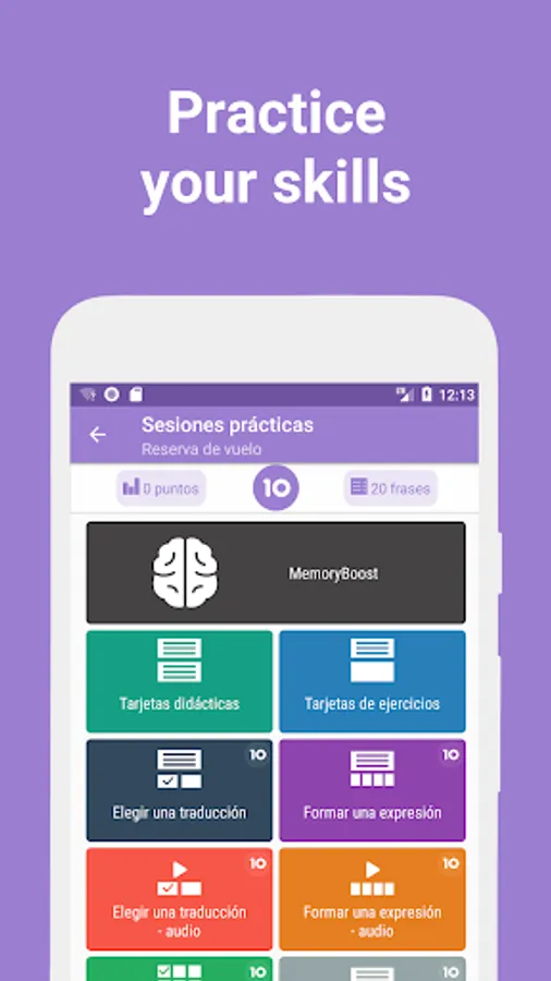Our unique algorithm improves the learning process, using proven methods from the field of memory research. Phrases adapts individually to you, selectively repeats the material with which you had problems. Completing lessons and playing games, you will gain experience, move to higher levels and collect rewards.