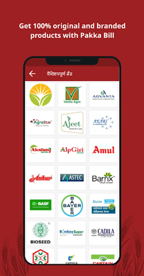 #4. Agriculture Shopping (कृषी शॉपिंग) Agrostar app is the best online shopping store for farmers. Kisan can do the shopping for all the agri-products -seeds, crop nutrition, crop protection, farm implements, organic products, etc. from Agrostat Agri-Doctor App. The app has products from more than 150+ reliable agriculture brands like Bayer, DOW, Dhanuka, Indofil, Ajeet, MAHYCO, Rasi, Kisan Kraft, Pioneer, Monsanto, Ankur, Honda, TATA Rallis, Kaveri, UPL, Mahindra, John Deere, Kubota, VST, Lemken, Jain Irrigation, Rivulis, etc.