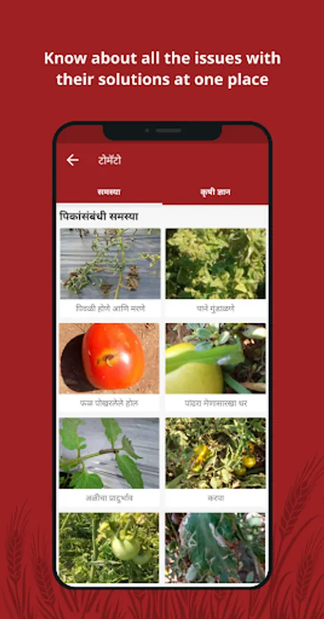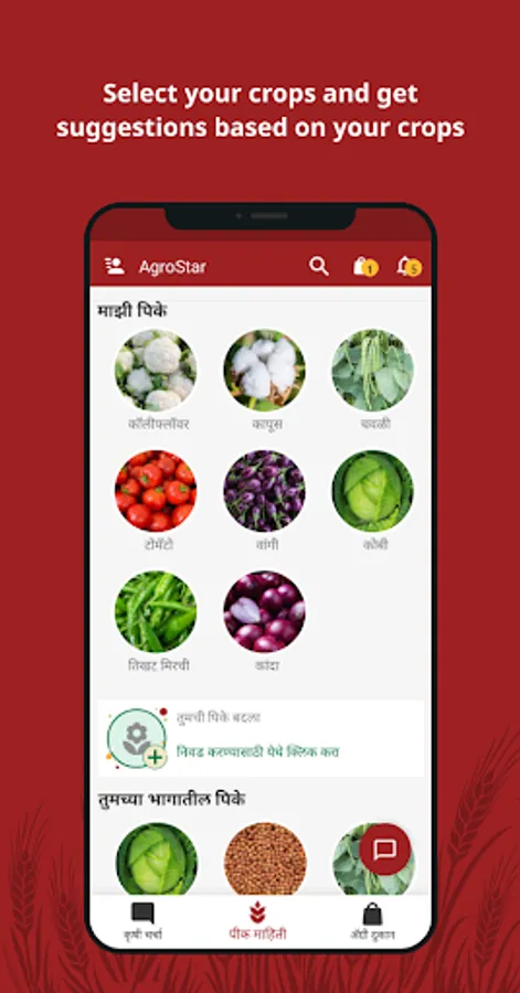#3. Crop Info (फसल जानकारी) (GJ, MH, RJ) Get expert information about 50+ crops including vegetables, horticulture, floriculture, fodder, cash, oilseed, spices, and pulses. Identify most diseases & nutrition issues in major crops like Cotton, Okra, Cumin, Bajara, Tomato, Watermelon, Chilli, and get to know their symptoms. You also get guidance on methods to solve them using quality products, both organic and chemical, from more than 150+ agriculture brands. In addition to this, you get smart farming, organic farming tips, and mandi price in the app.