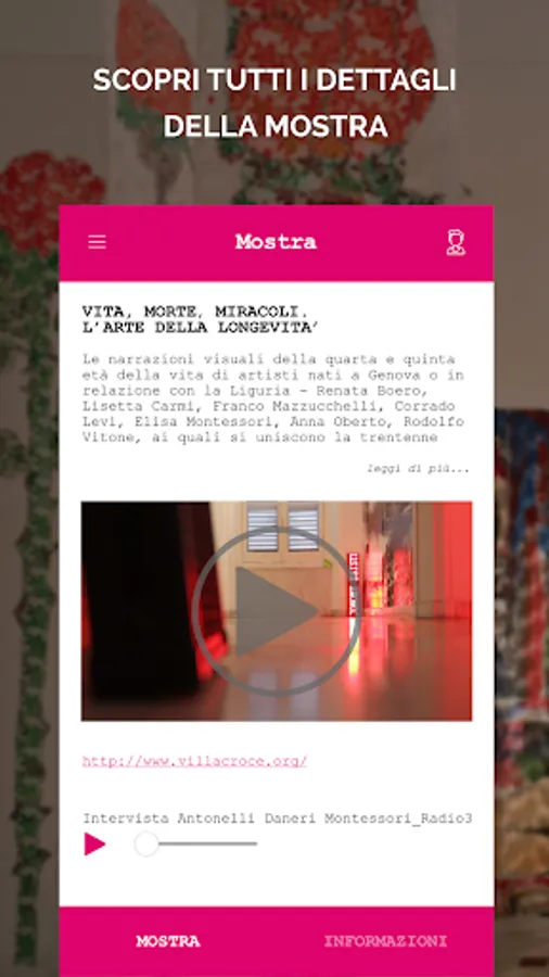 The exhibition featured audio interviews and speeches of: Massimiliano Valerii (general director of Censis), Valter Longo (argument superstar and director of the Institute of Longevity of Los Angeles, and bestselling author of The Longevity Diet published worldwide) Stefano Gustinchich the Italian Institute of Technology (geneticist and "fighter" against cellular degeneration of Parkinson's and Alzheimer's), Alberto Pilotto and Patrick Odetti (pri seas geriatrics respectively Galliera Hospital and the Hospital San Martino), Massimo Livi Bacci (large dean of demographic studies), Franca Rossi Galli (sexologist of the third age), Nicholas Casiddu (design teacher of the "silver economy" at the Faculty of Architecture), Carla Costanzi (sociologist), Lucio Ghio (primary psychiatric dell ' Galliera Hospital).