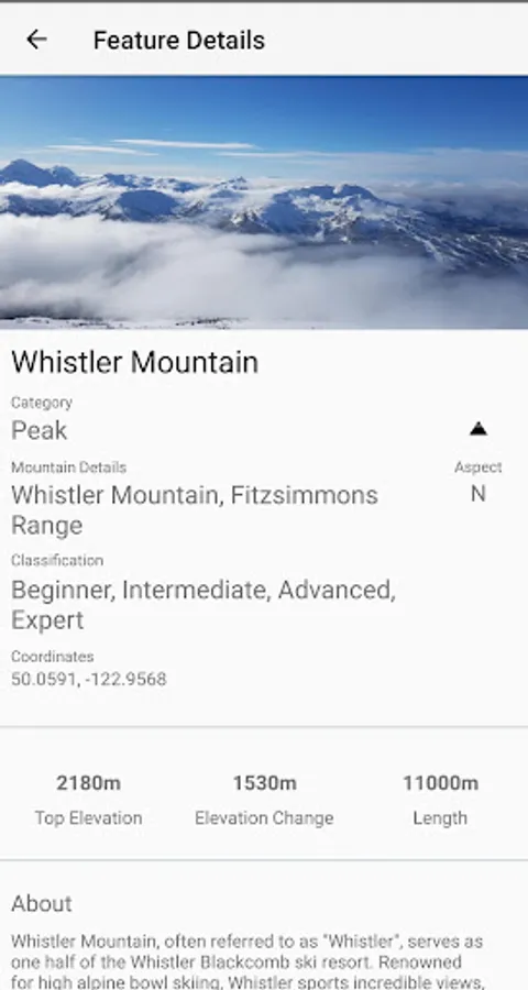 - NEW: The run / feature database is a database that contains over 800 entries about places located on Whistler and Blackcomb Mountains and will soon be expanding to cover our Spearhead Traverse map. Users can search for a feature, select their choice, learn about the run/feature and then quickly locate the feature on the map.
