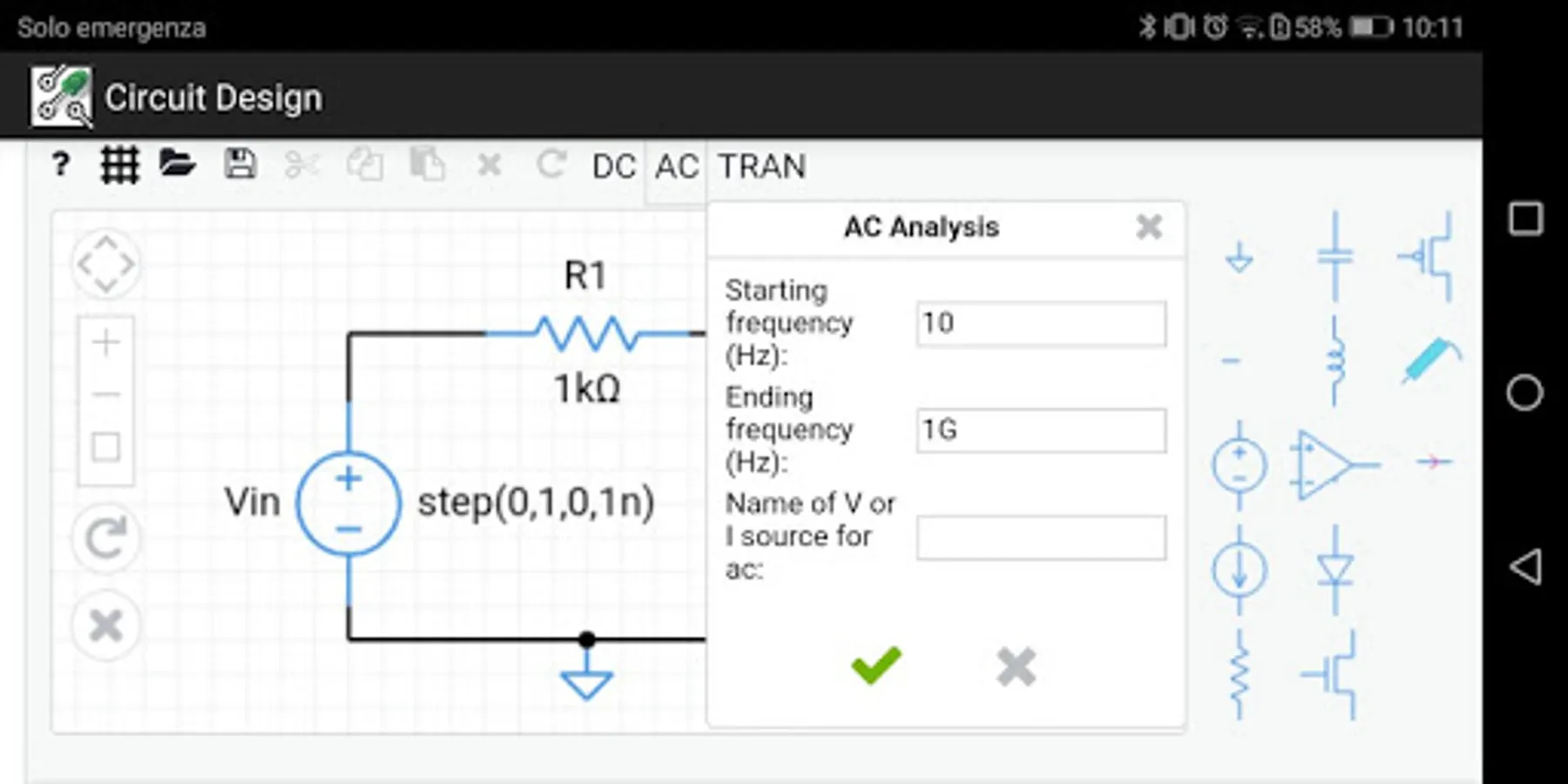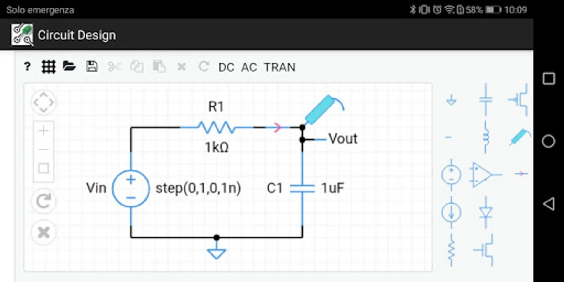 - Select DC, AC, or TRAN from the menu to simulate the circuit