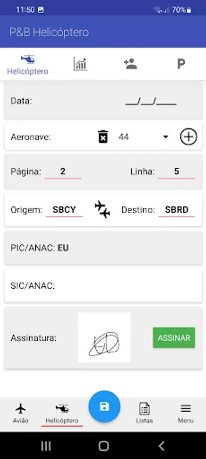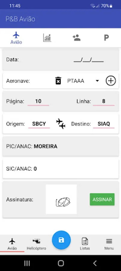 After creating your Weight and Balance list, it will be saved in the Downlaod folder on your phone. I recommend that after creation you move the file to a cloud (Dropbox, Google Drive, etc) of your choice so that when ANAC asks for your weight and balance you can access it from another device. Remembering that the file is saved with the day, month, year, daily number and page number, thus facilitating the location of your Weight and Balance.
