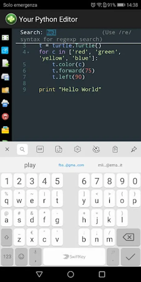 * Bluetooth keyboard shortcuts Ctrl-Space to autocomplete the code
