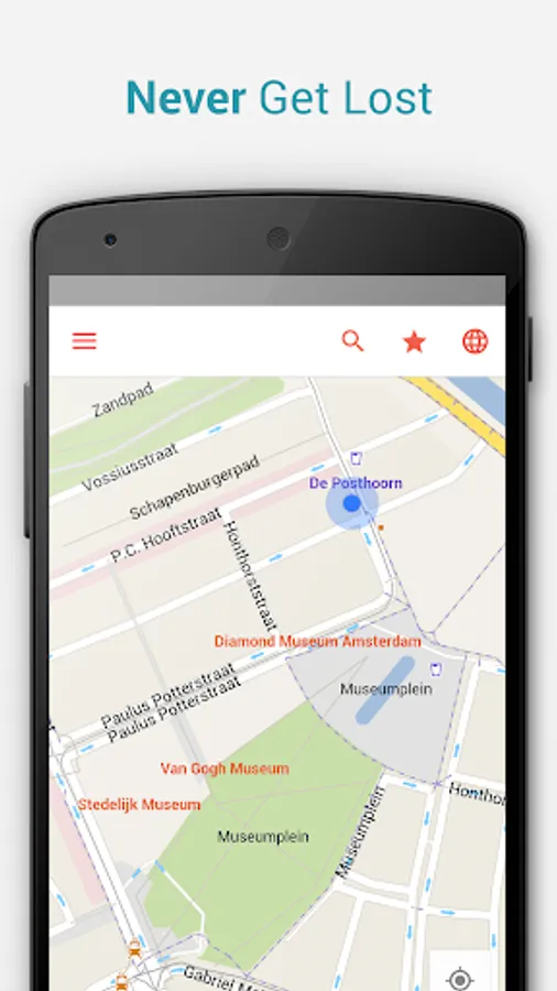 Never get lost and keep your orientation. Identify your location offline on the map, even without an internet connection. See what is around you on a map that shows a zoom able level of detail with many location related information. Find streets, attractions, restaurants, hotels, local nightlife and other interesting places – and get guided in the walking direction of places you want to see.