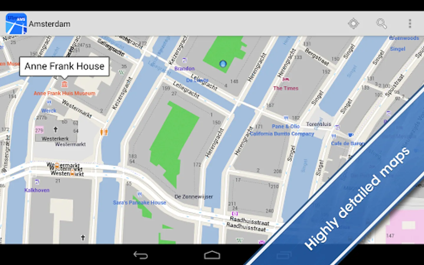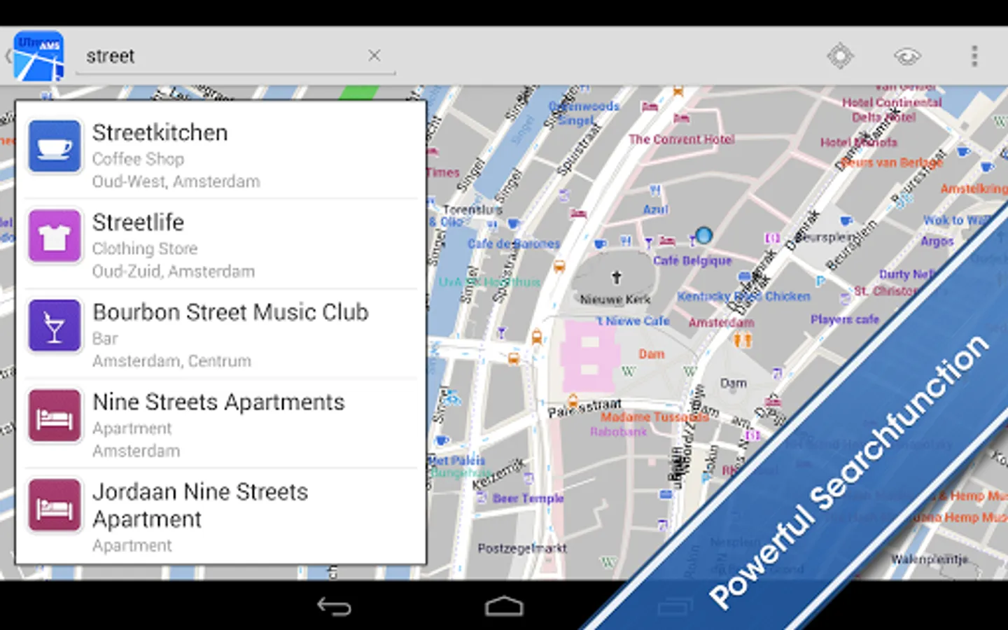 With this clear and detailed offline map to Amsterdam, the capital city of the Netherlands you will find your way through coffee shops, the rijksmuseum and many more POIs no matter if you arrive at Schiphol, by train or by car.