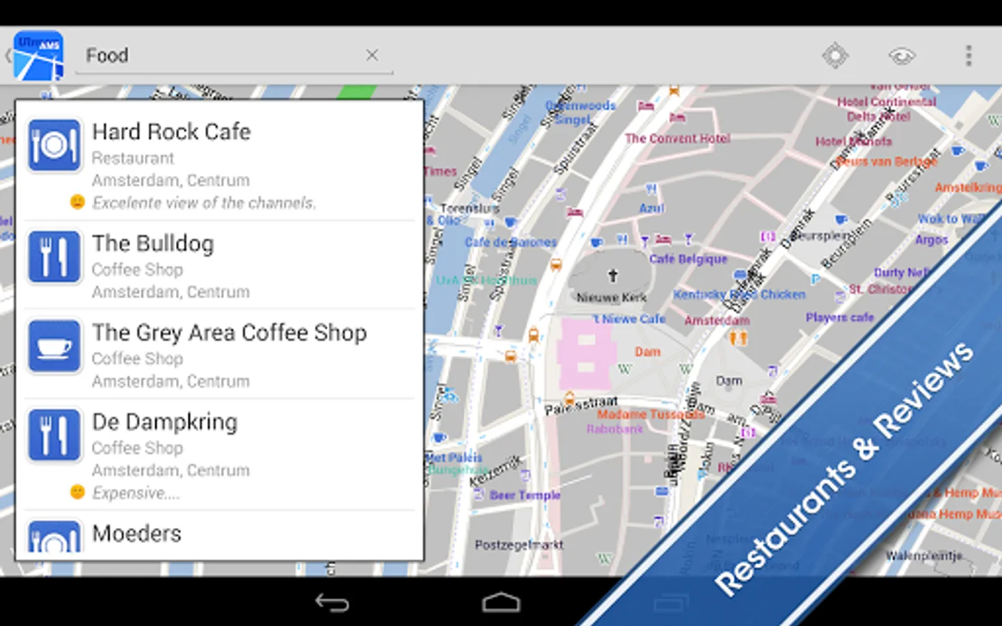 Find the best restaurants, shops, attractions, hotels, bars, etc. Search by name, browse by category or discover nearby places using your device’s GPS – even offline and without data roaming.