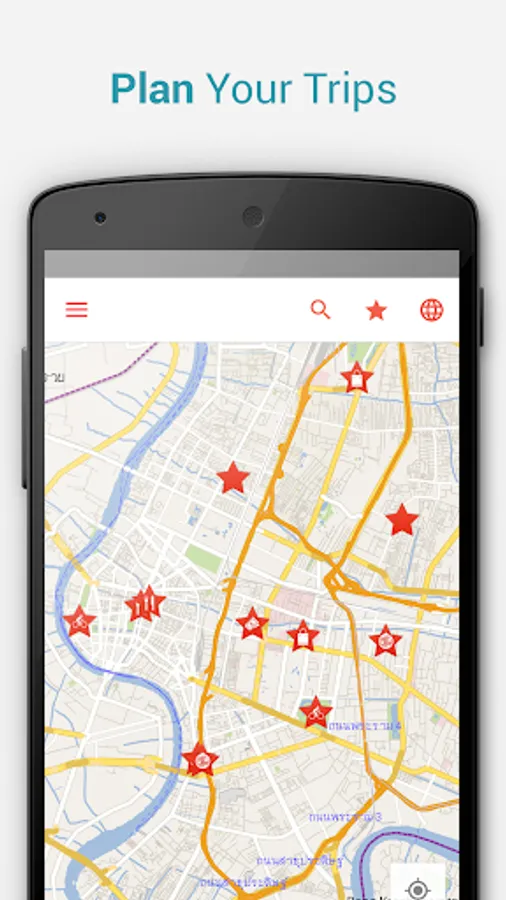 The Bangkok Offline Map and the Bangkok City Guide content are fully downloaded and stored on your device. All features, such as address searches and your GPS location also work offline and without data roaming (an internet connection is of course required for initial downloading of data or booking hotels).