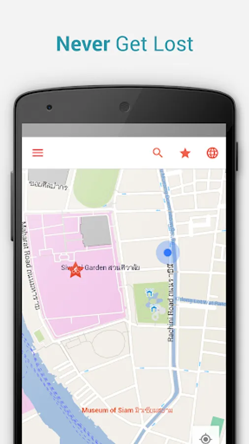 Never get lost and keep your orientation. See your location on the Bangkok Offline Map, even without an internet connection. Find streets, attractions, restaurants, hotels, local nightlife and other POIs – and get guided in the walking direction of places you want to see.