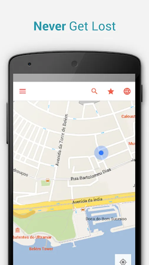 The Lisbon Offline Map and the Lisbon City Guide content are fully downloaded and stored on your device. All features, such as address searches and your GPS location also work offline and without data roaming (an internet connection is of course required for initial downloading of data or booking hotels).