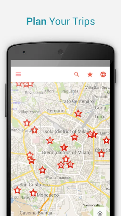 The Milan Offline Map and the Milan City Guide content are fully downloaded and stored on your device. All features, such as address searches and your GPS location also work offline and without data roaming (an internet connection is of course required for initial downloading of data or booking hotels).