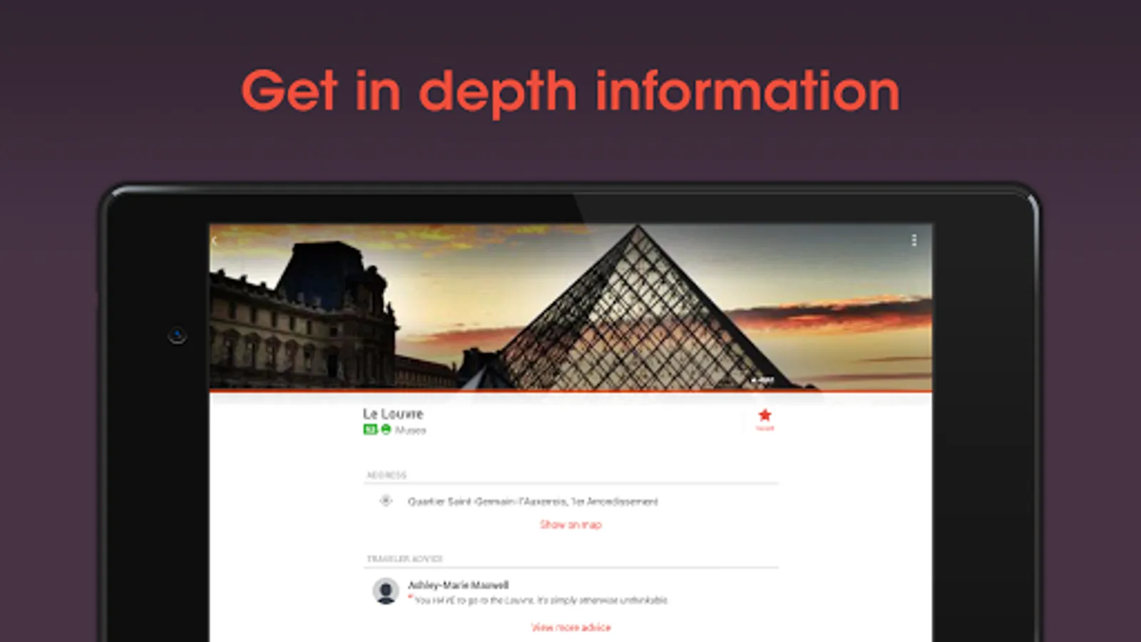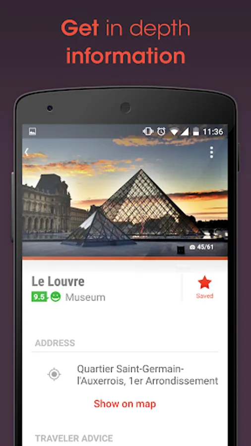 Have all the information offline and freely portable. For each destination, access comprehensive and up-to-date information covering thousands of places, attractions, points of interest and many hotel booking options within this Paris travel guide.