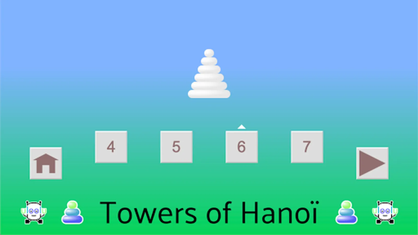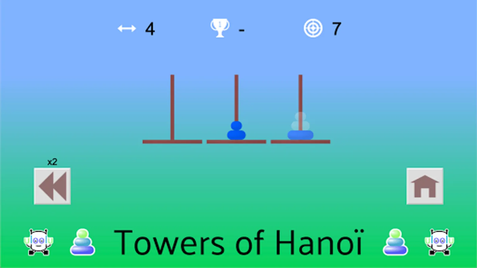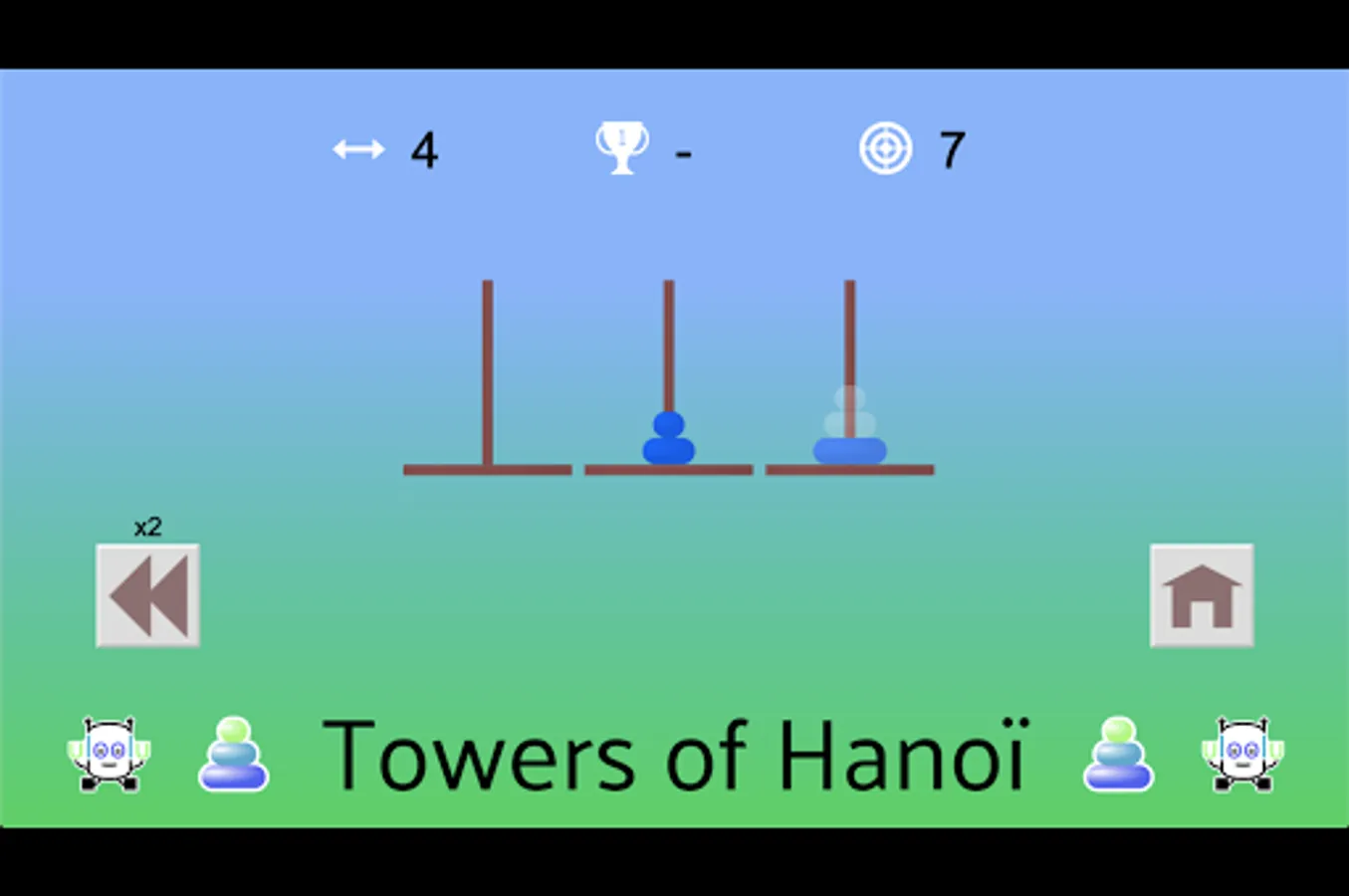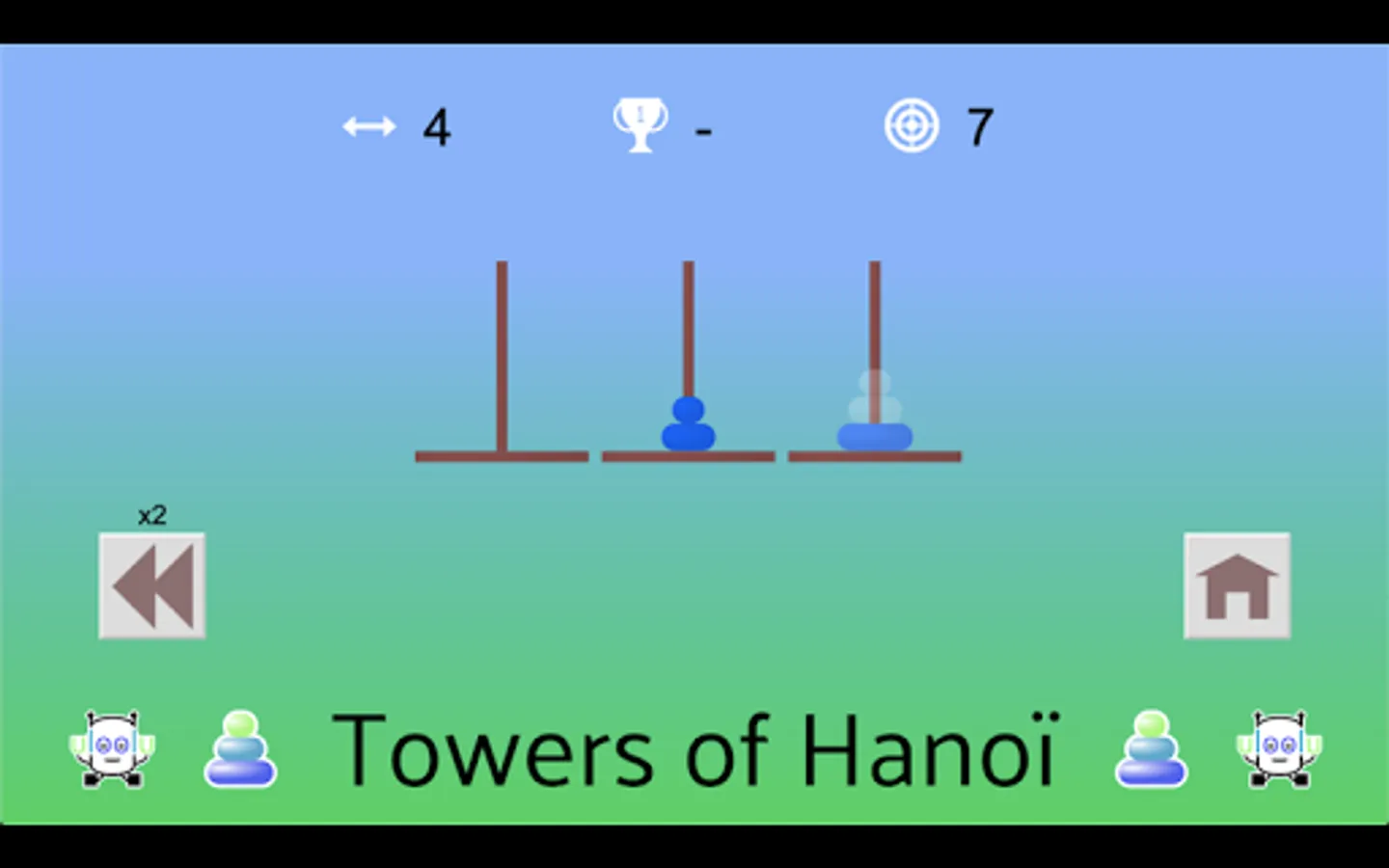 With uloolu's Towers of Hanoi, you will be guided step by step to learn the basics of solving simple Towers of Hanois puzzle, and be challenged to resolve more and more complex setups.