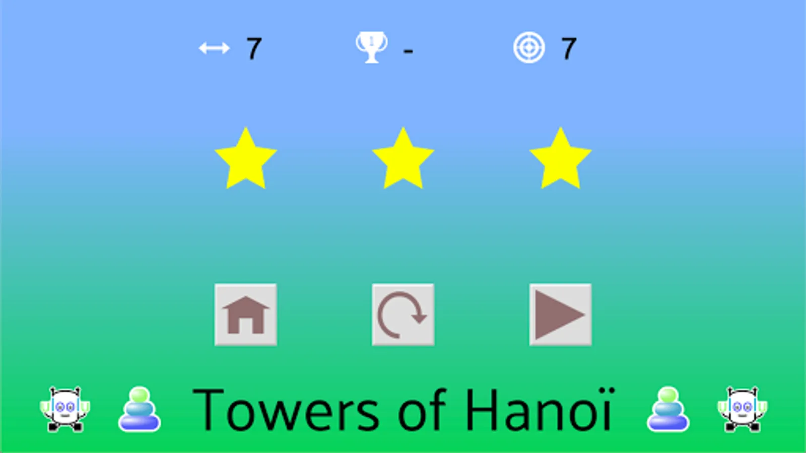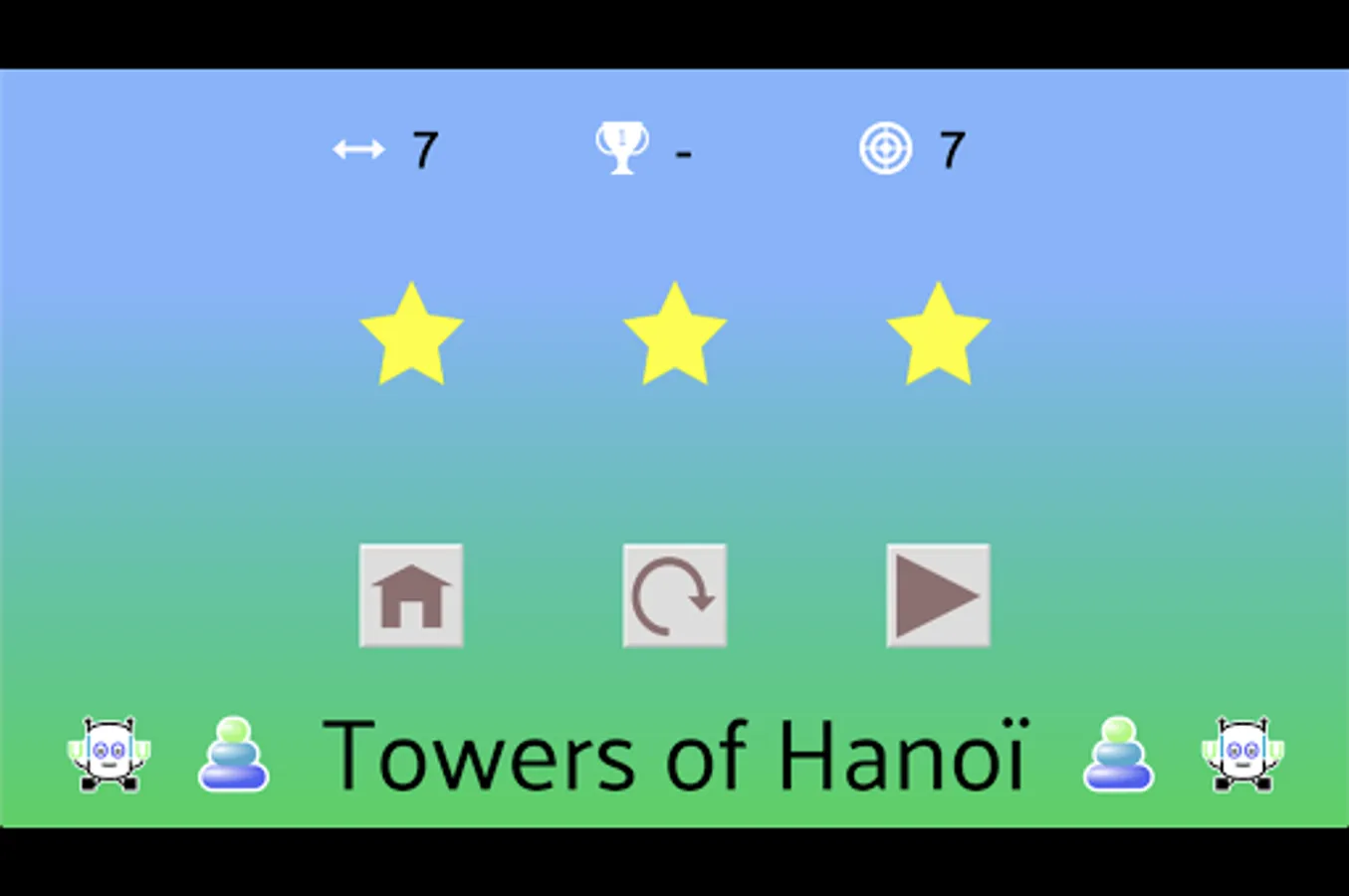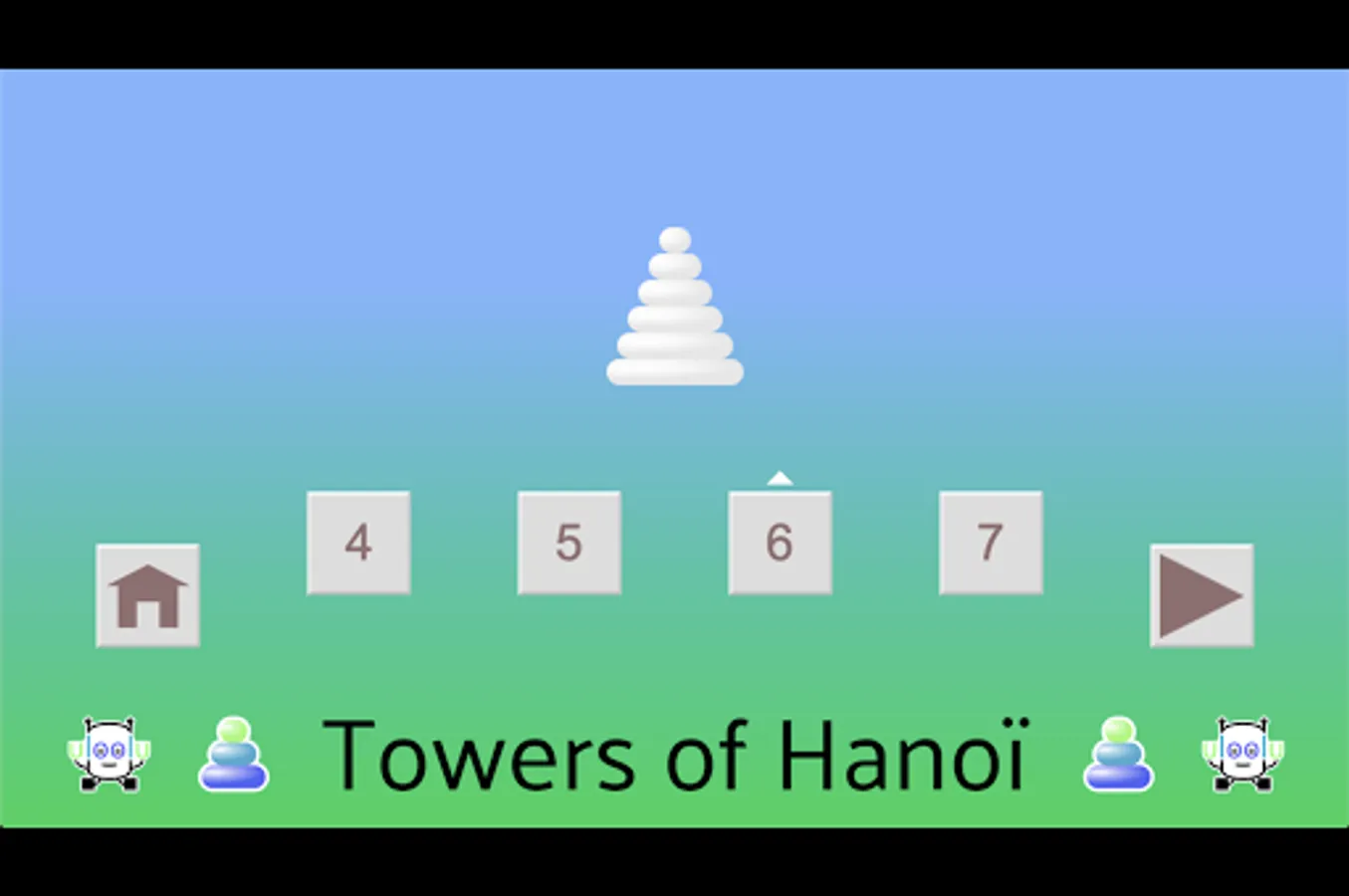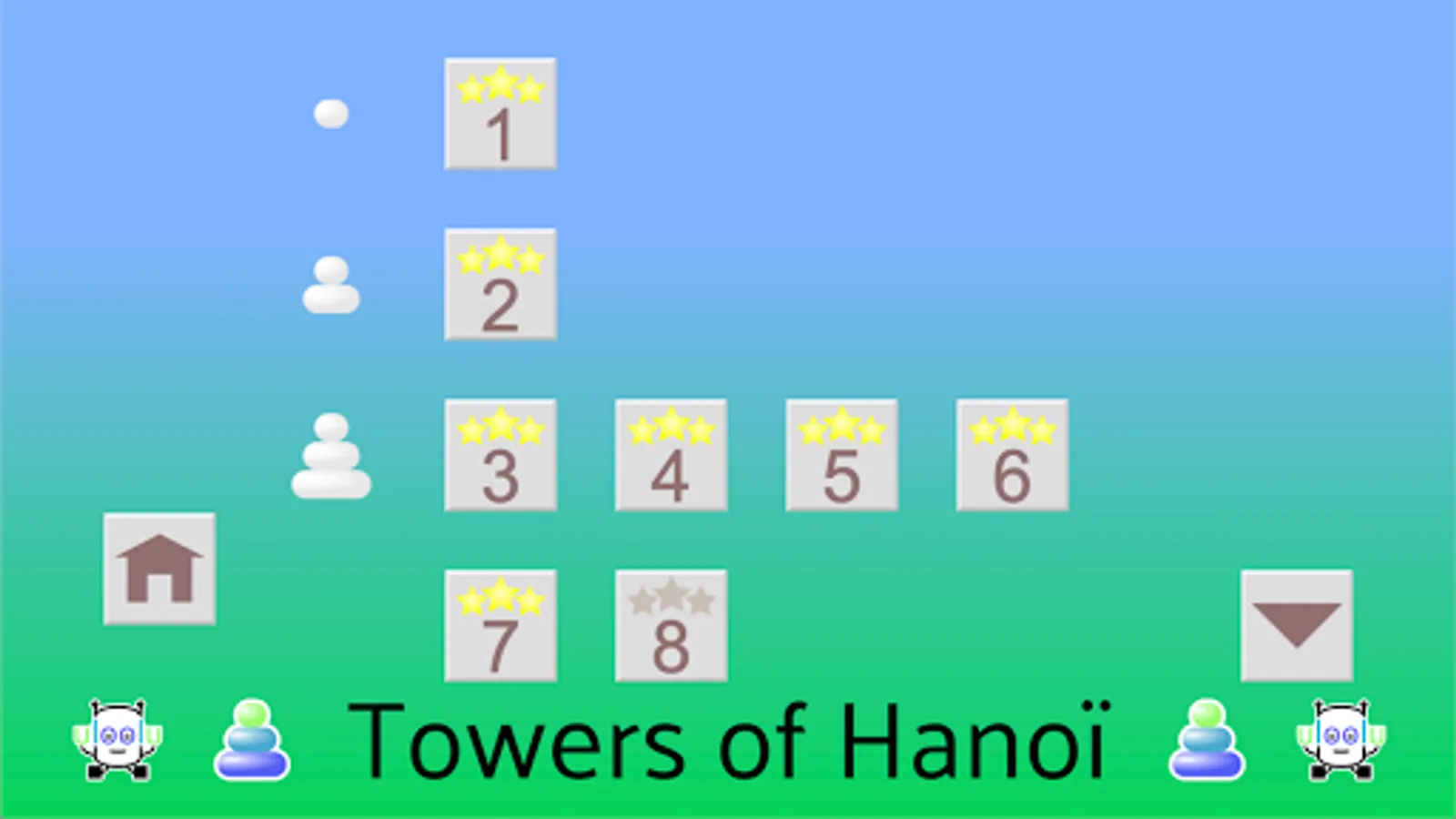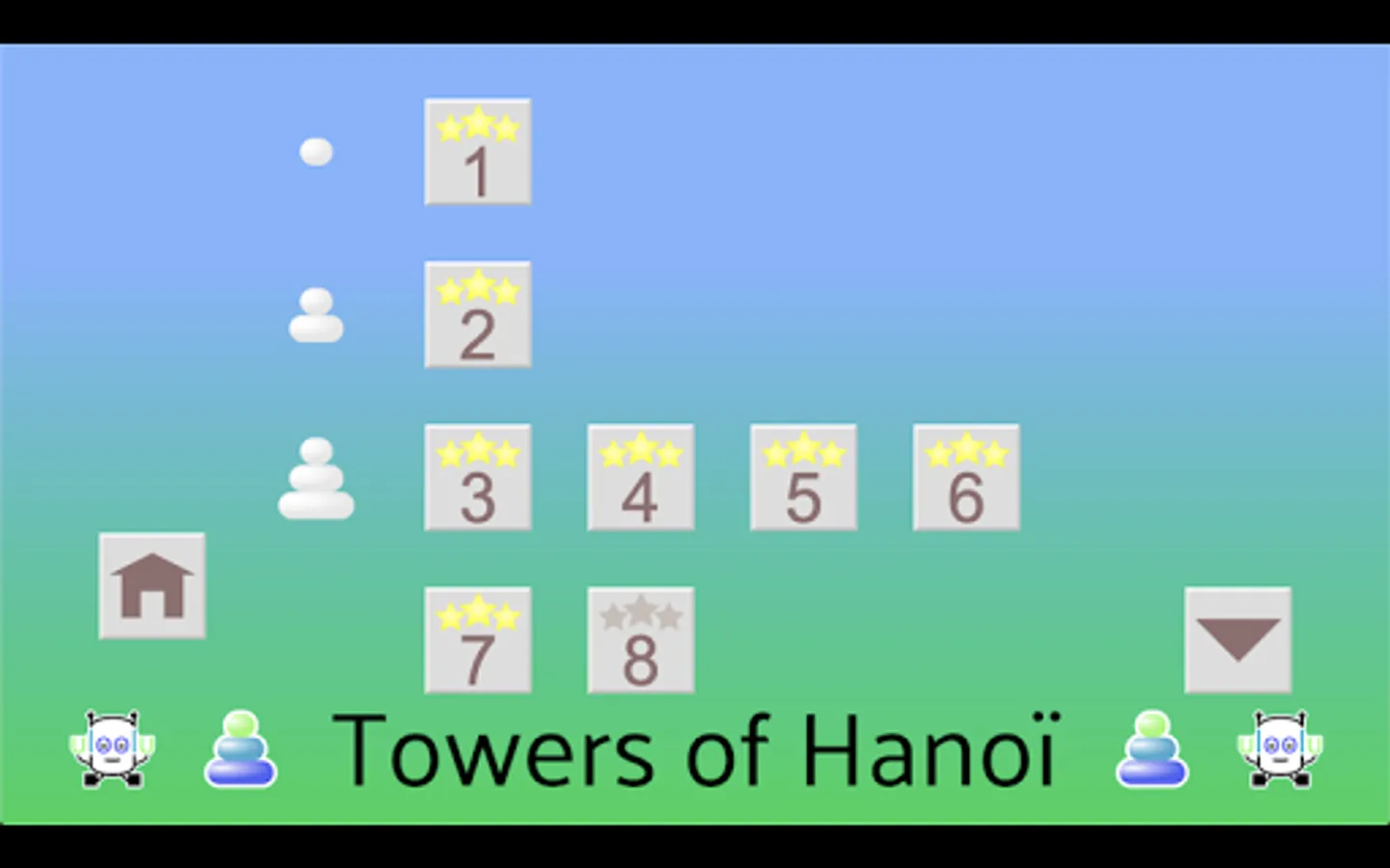 With uloolu's Towers of Hanoi, you will be guided step by step to learn the basics of solving simple Towers of Hanois puzzle, and be challenged to resolve more and more complex setups.
