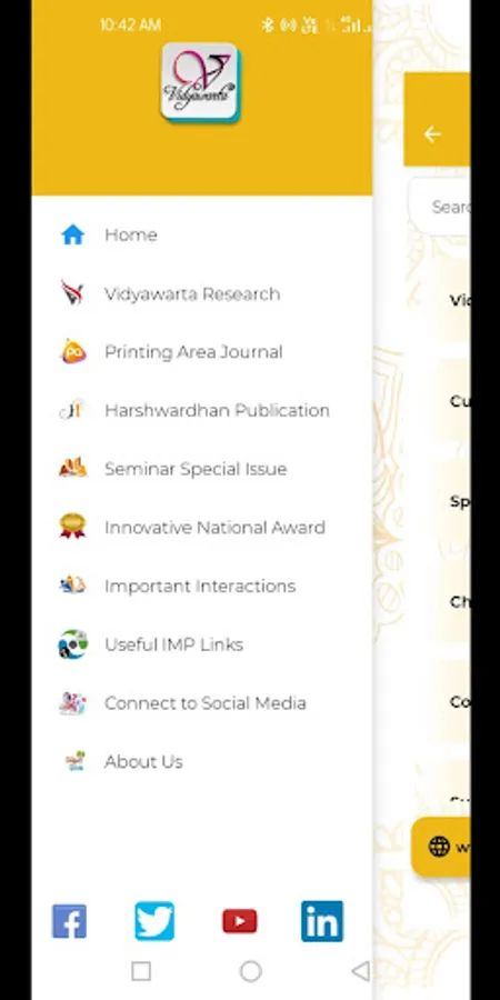 विद्यावार्ता इस अँड्रॉइड ॲप के माध्यम से किताबों का प्रकाशन, शोध जर्नल्स प्रकाशन, उच्च शिक्षा तथा शैक्षिक कार्यसंबंधी इन्फॉर्मेशन आसान तरीके से उपलब्ध की गई है। कॉलेज यवं विश्वविद्यालयो के अध्यापक और अनुसंधान करने वाले शोधार्थी के लिये विद्यावार्ता ॲप एक महत्वपूर्ण उपलब्धी है।