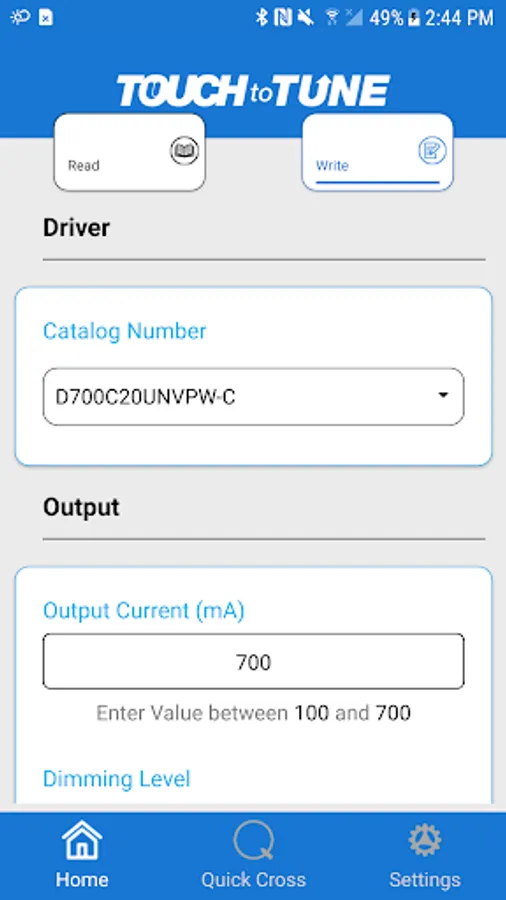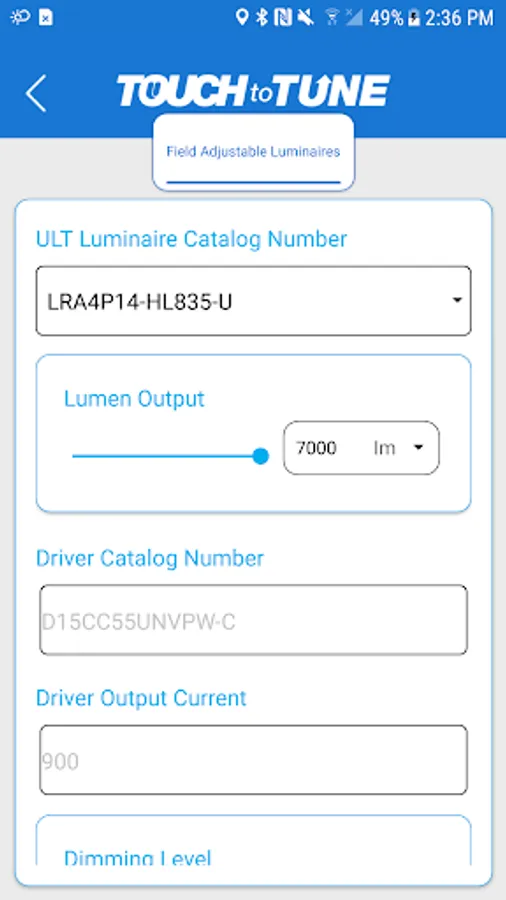 Touch to Tune from Universal Lighting Technologies provides immediate tuning for field replacement of LED drivers. This app allows installers to easily identify the driver needed and program the output current, minimum dim current, dimming curve, full bright control voltage, minimum dim control voltage and dim-to-off voltage.