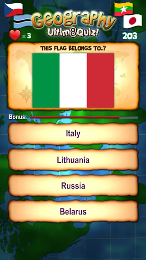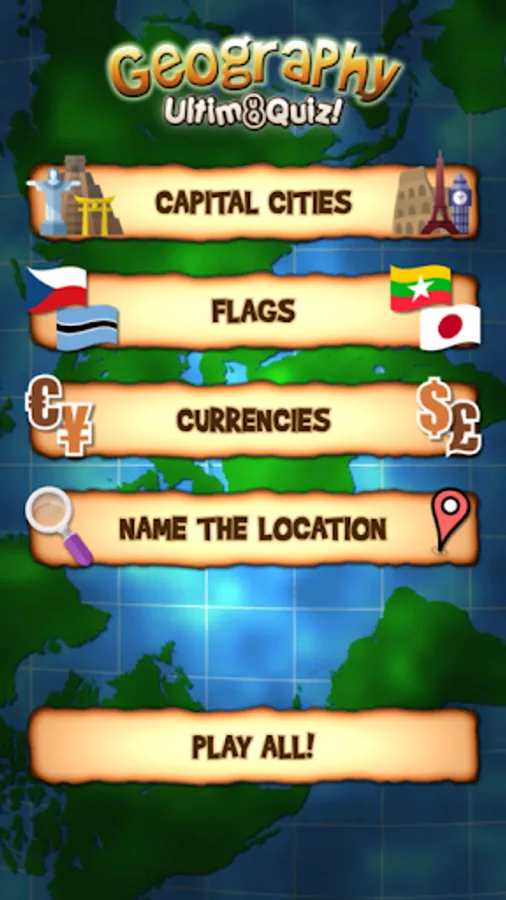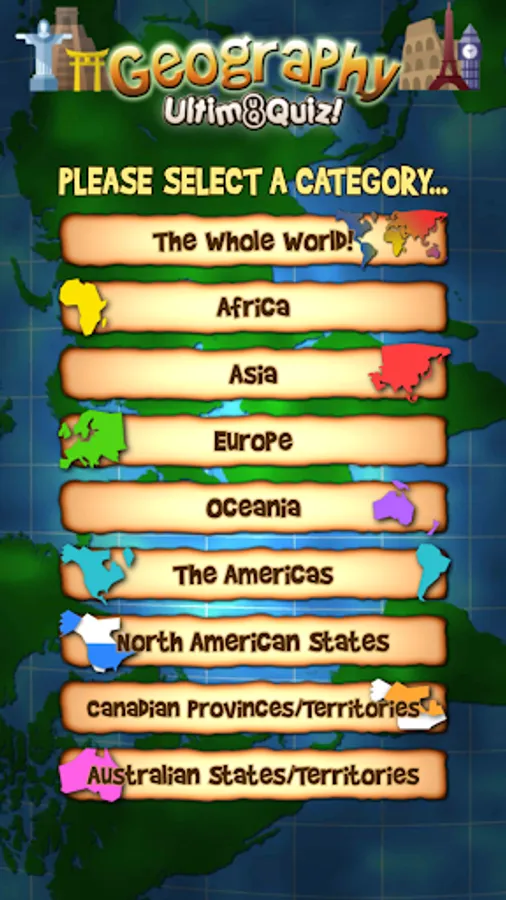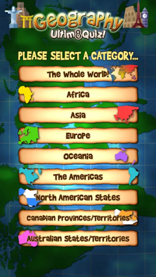 Fun trivia questions covering more than 300 countries/islands, including US states, Canadian Provinces/Territories and Australian States/Territories. Perfect for educational use and Geography exam revision!
