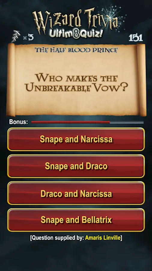 We’ve tried to create a really cool Harry Potter game, but remember, there are sometimes variations between the books and the films. Where appropriate we've used the original books as the correct source for the answers, so please check the source before leaving a low rating if you think one of the answers is incorrect. If you do spot an error then please let us know using the feedback form at http://www.ultim8quiz.com and we’ll update the quiz.