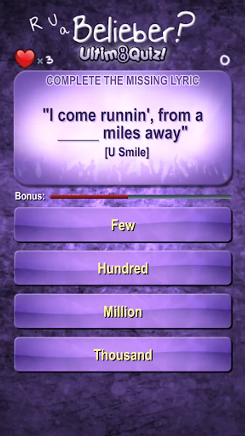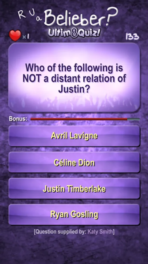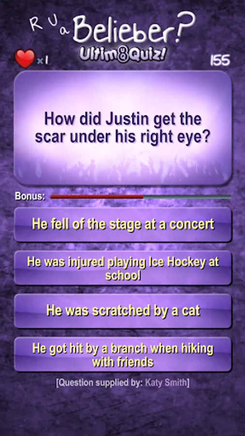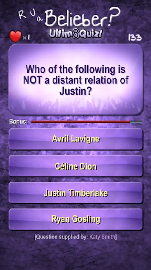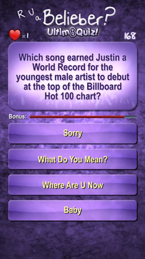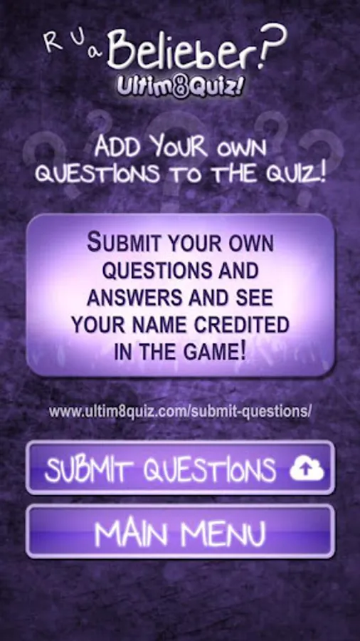 If you love Justin Bieber and know tons of trivia about his life and music you can upload your own questions and answers and see your name credited in the game - help us to build the biggest Belieber quiz game in the world!
