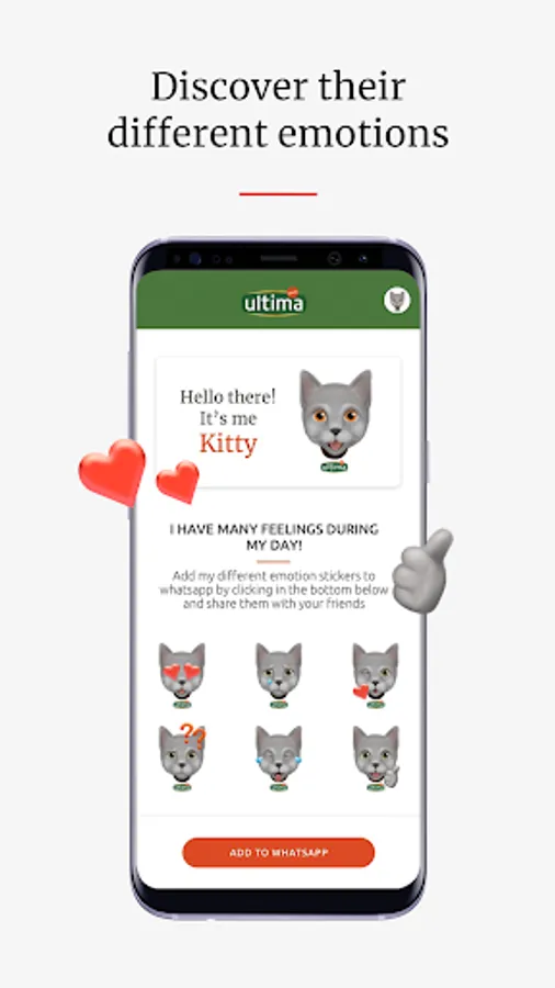 Discover the emojis and stickers creator by Ultima! In Ultima, we know that your dog or cat is another family member for you. That's why we bring you a way to share more activities with them. You'll be able to create their avatar and transform them into emojis and stickers. Thanks to the multiple personalization choices, you'll have a huge range of possibilities at your disposal to create the perfect emoji for your dog or cat. Once you create it, you'll be able to download the emotions pack of your dog or cat and share it with your friends.