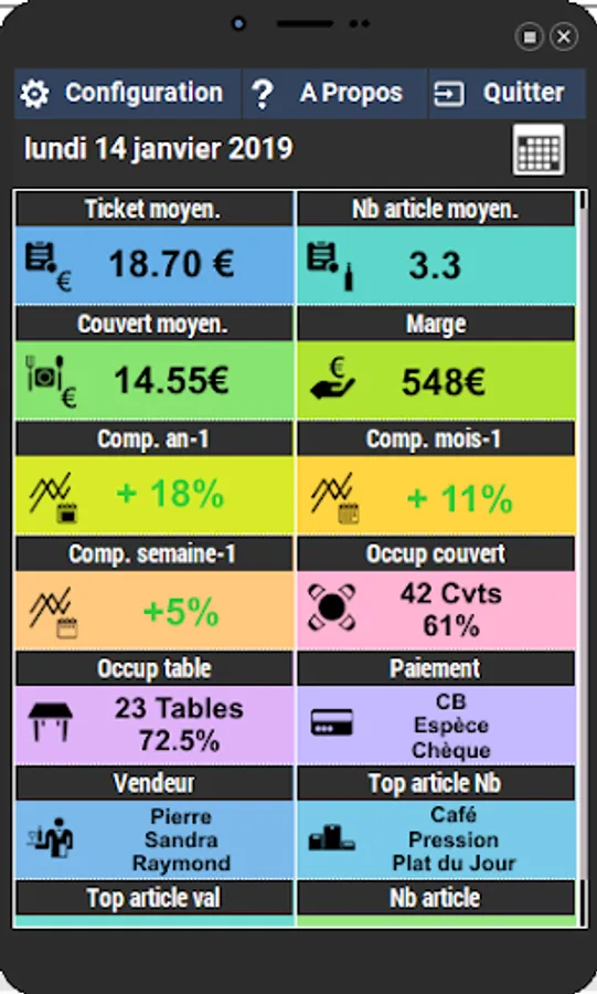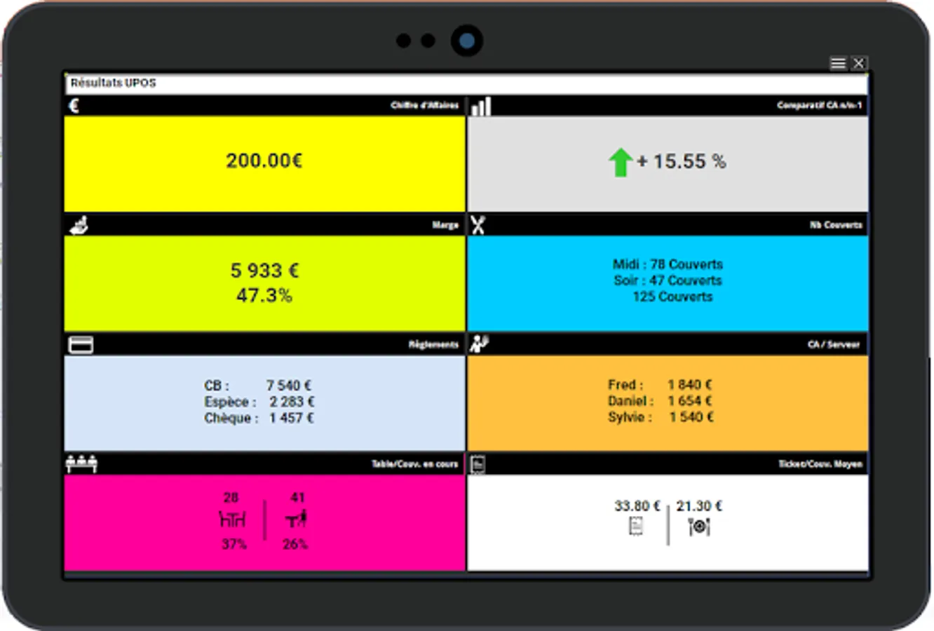 Mobile solution for viewing the simplified results of the payments made on the UPOS Premium solution by UltimaSOFT (average hedging, open tables, turnover, margins, occupation ...).