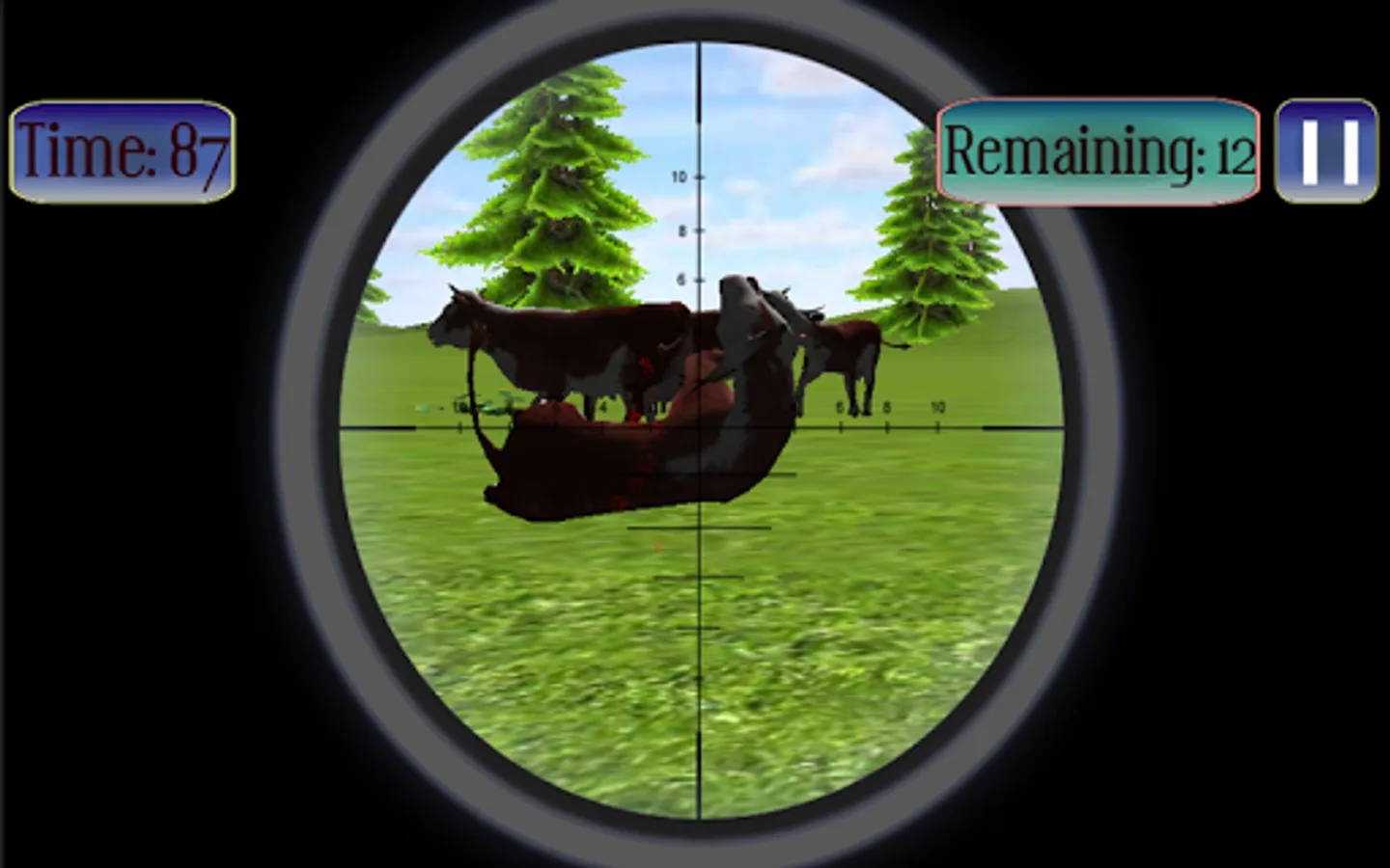 A person with passion of hunting arrived in the jungle but only cows are there. You hunts the cow for zeal and passion. Hunting with sniper "M24" is modern style of hunting and cows hunting yummy its a new concept for hunters because its simply available every where but no concept of hunt them.