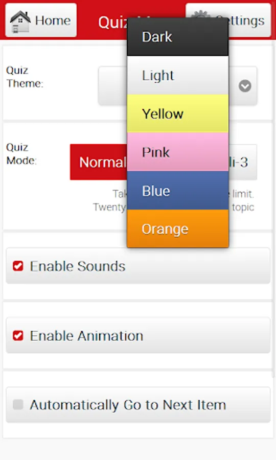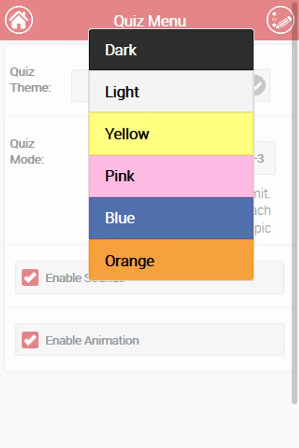 Choose from 6 (six) available app color-themes; Light, Dark, Yellow, Pink, Blue, and Orange!