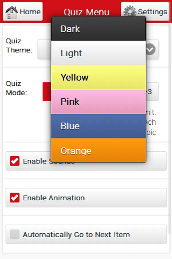 Choose from 6 (six) available app color-themes; Light, Dark, Yellow, Pink, Blue, and Orange!