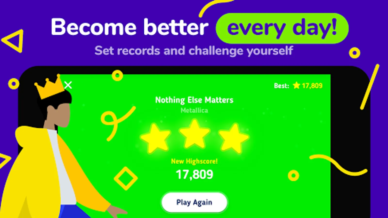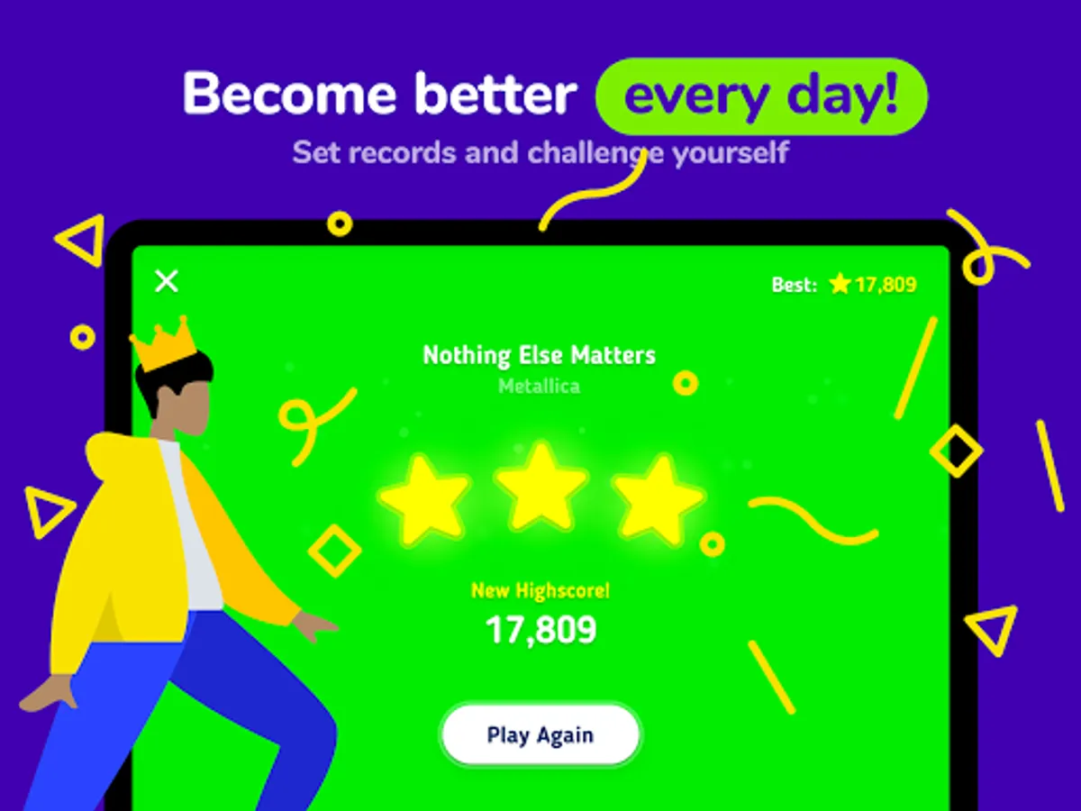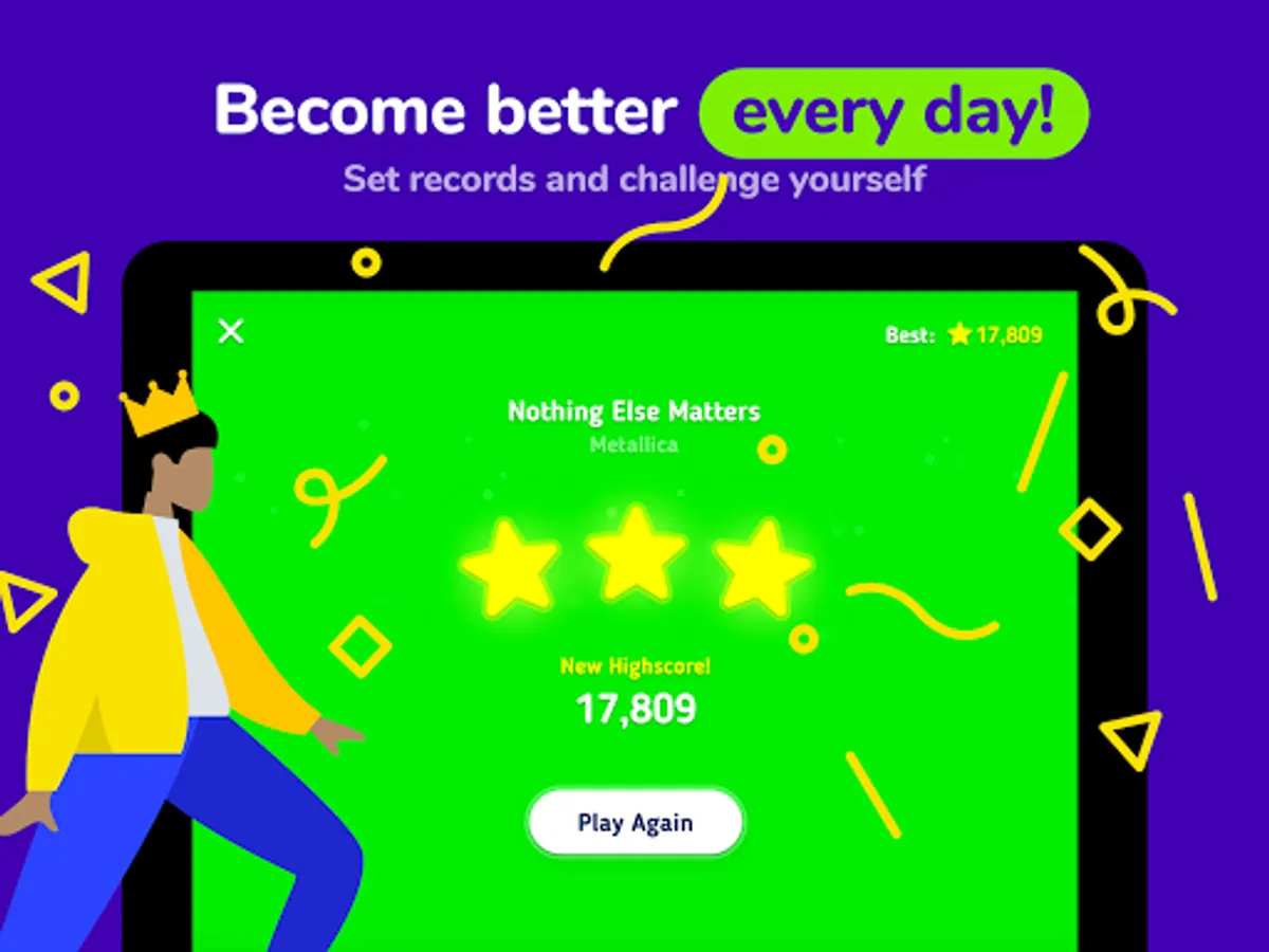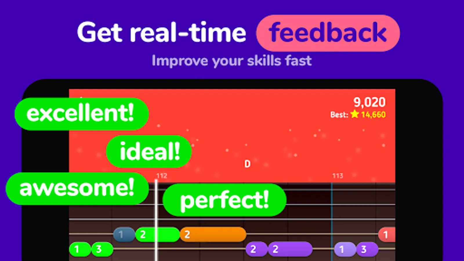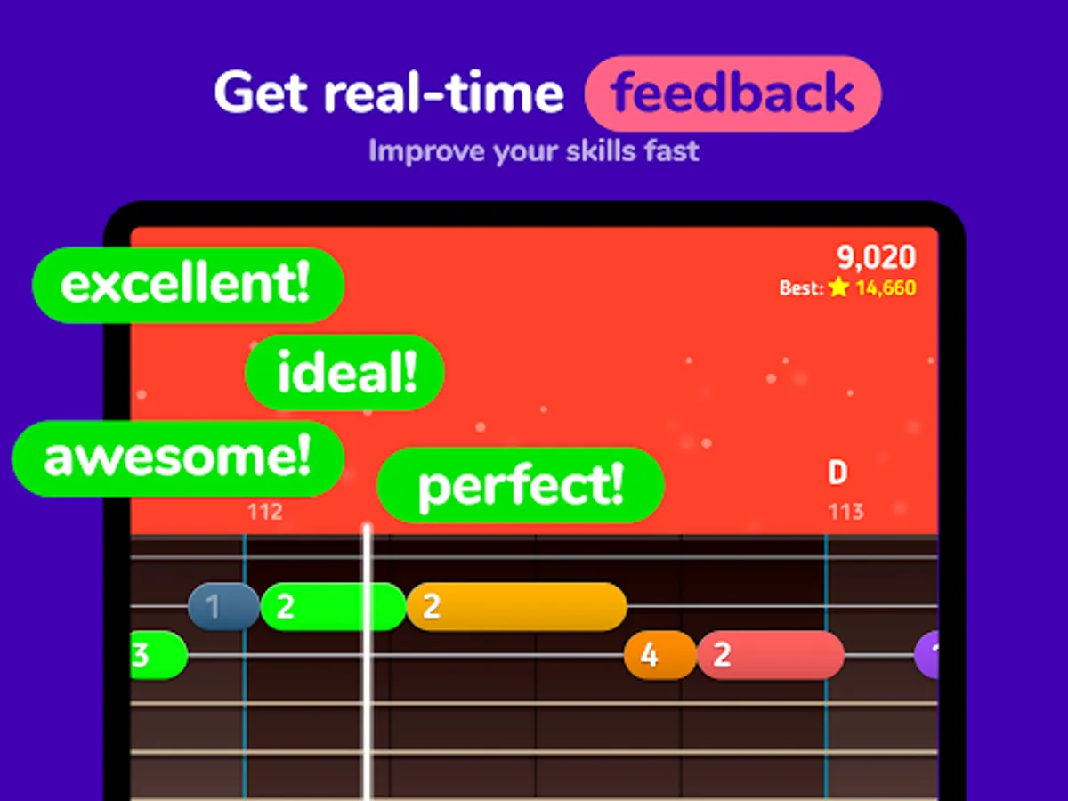Improve your skills by playing popular songs. The app will hear you play and give you feedback so you can get results faster and start playing songs you love.