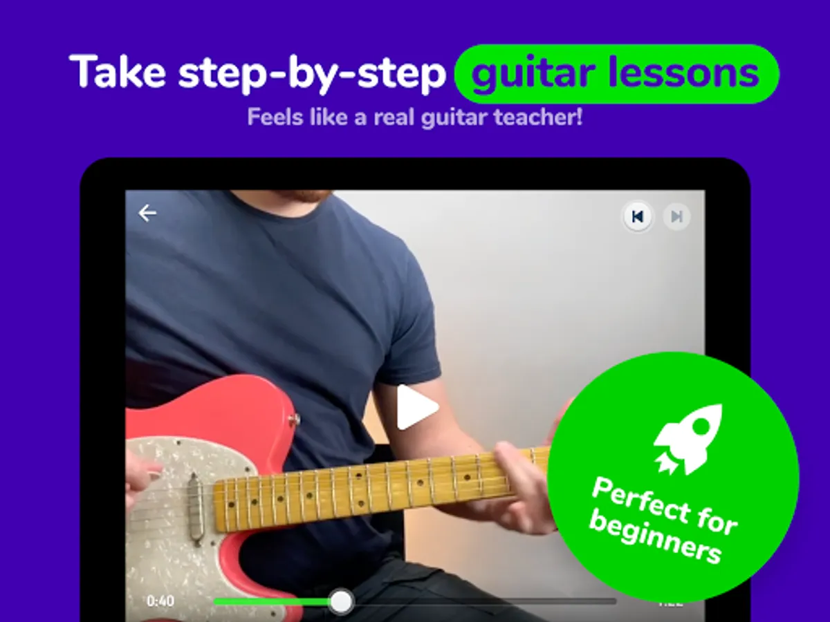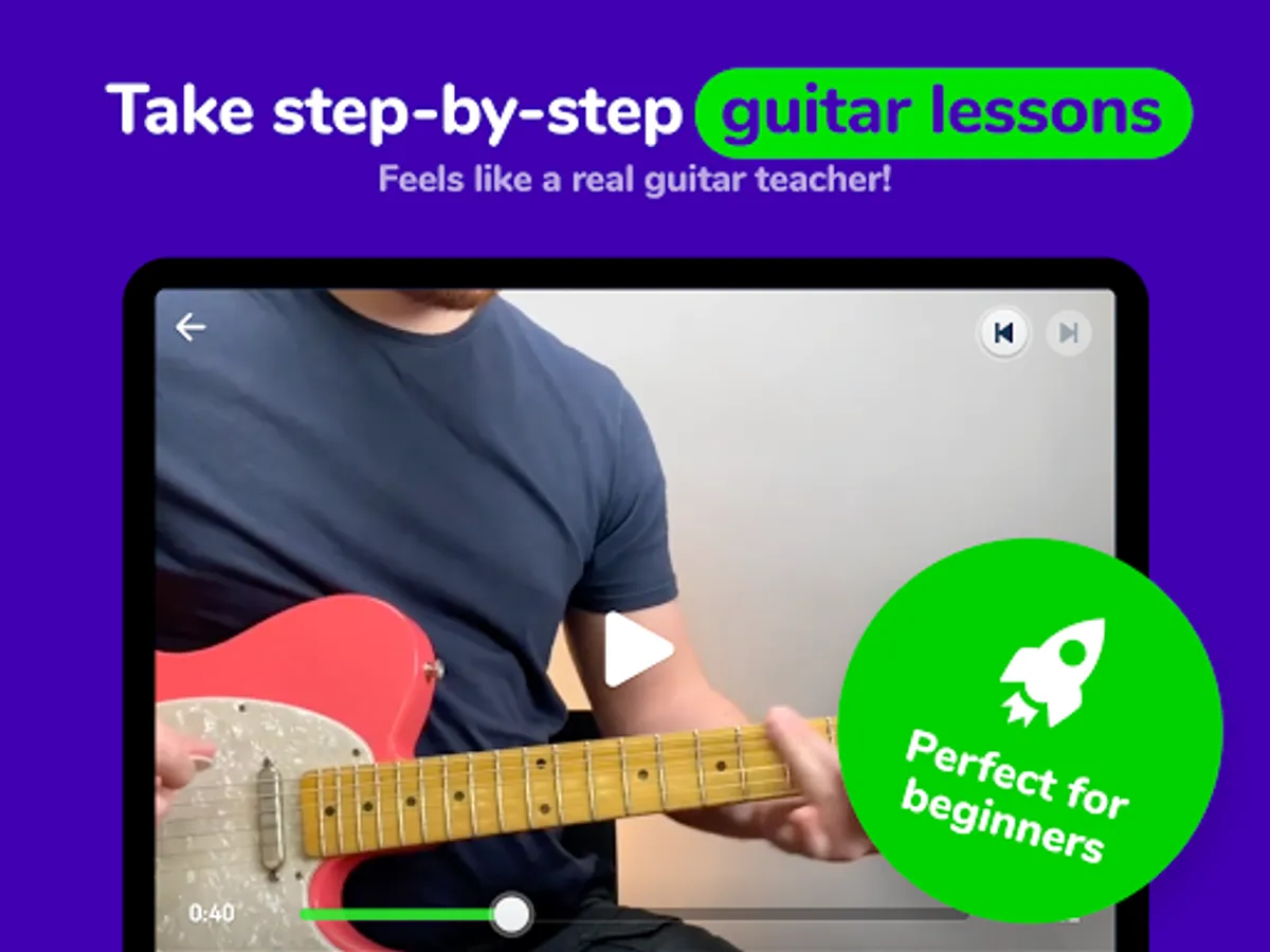 The combination of high quality interactive lessons from professional music teachers and cutting-edge technology allows you to learn guitar from scratch.