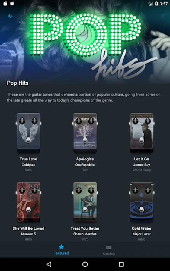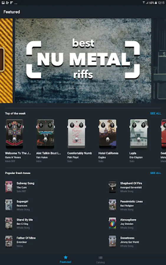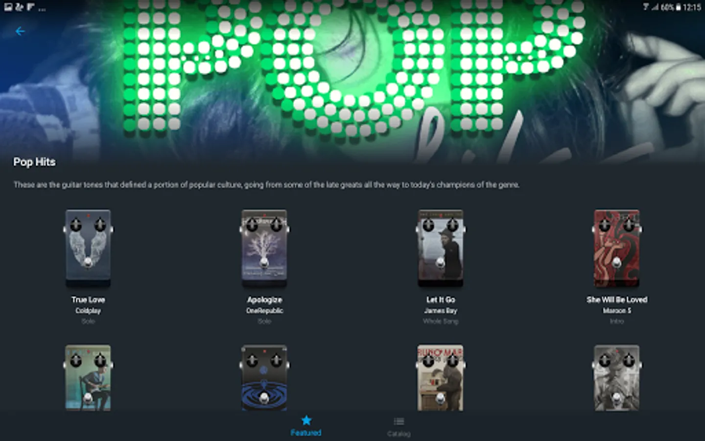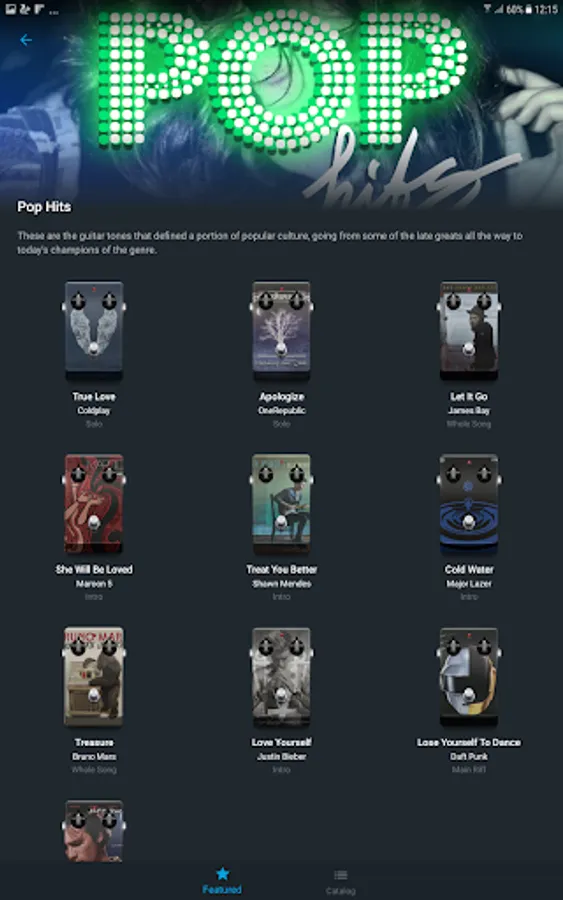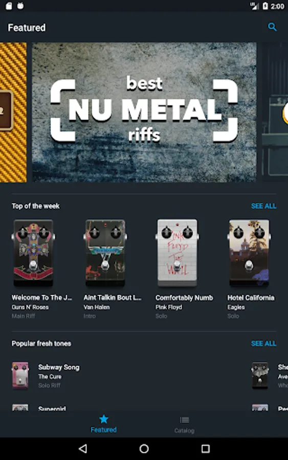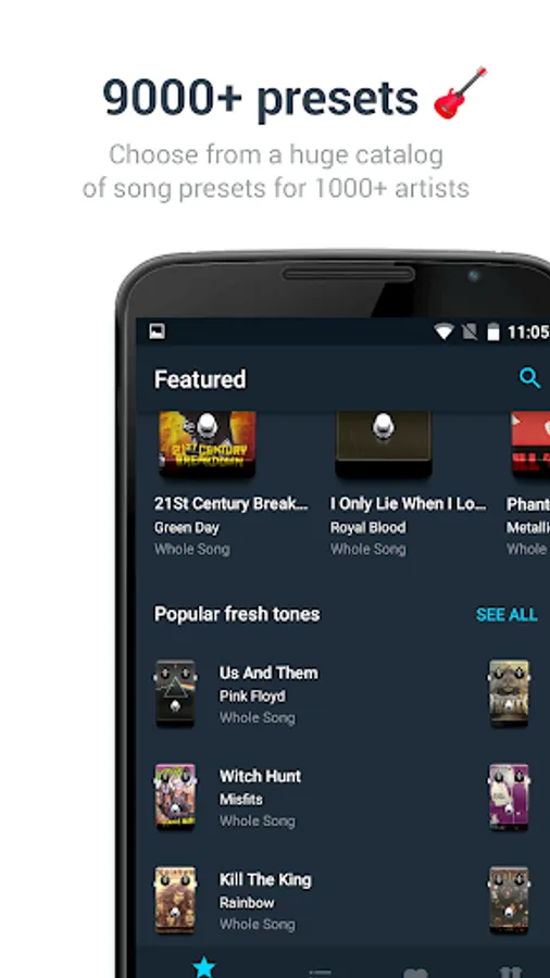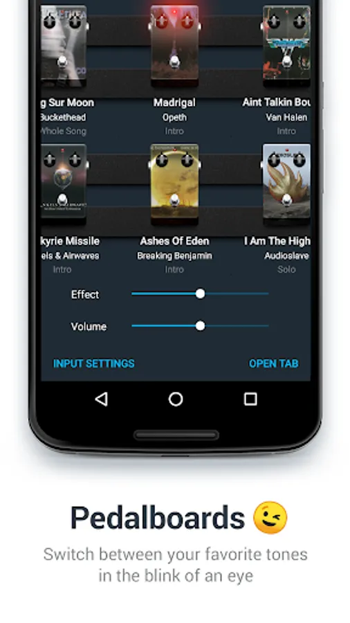 A huge collection of song presets allows you to choose effects from light acoustic sounds of "Come As You Are" to crushing heavy roars of "Master Of Puppets".