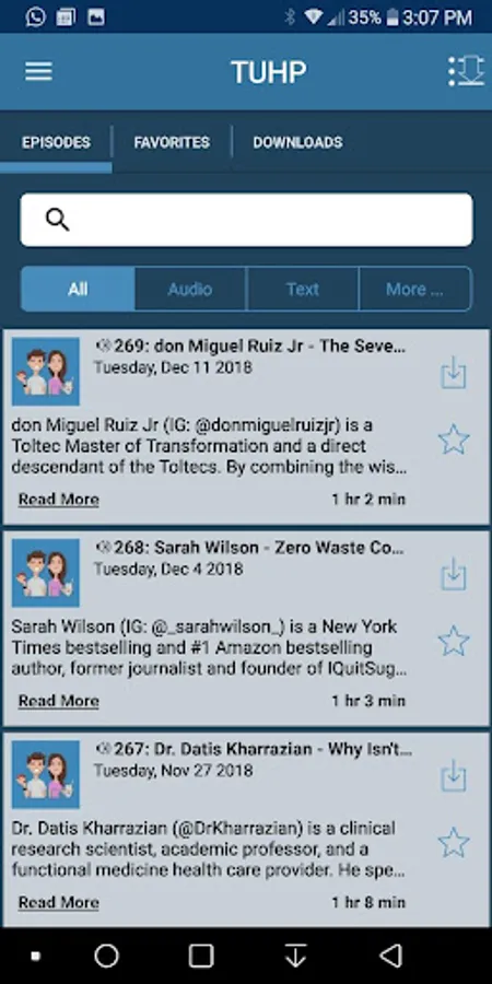 With this app you are always connected to the latest episodes and the show. You can quickly star episodes and save them to a list so you can easily enjoy them over and over.