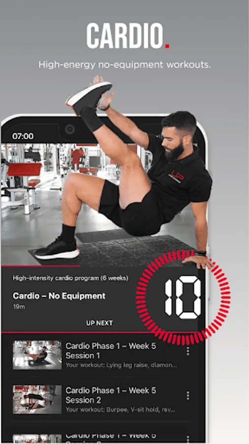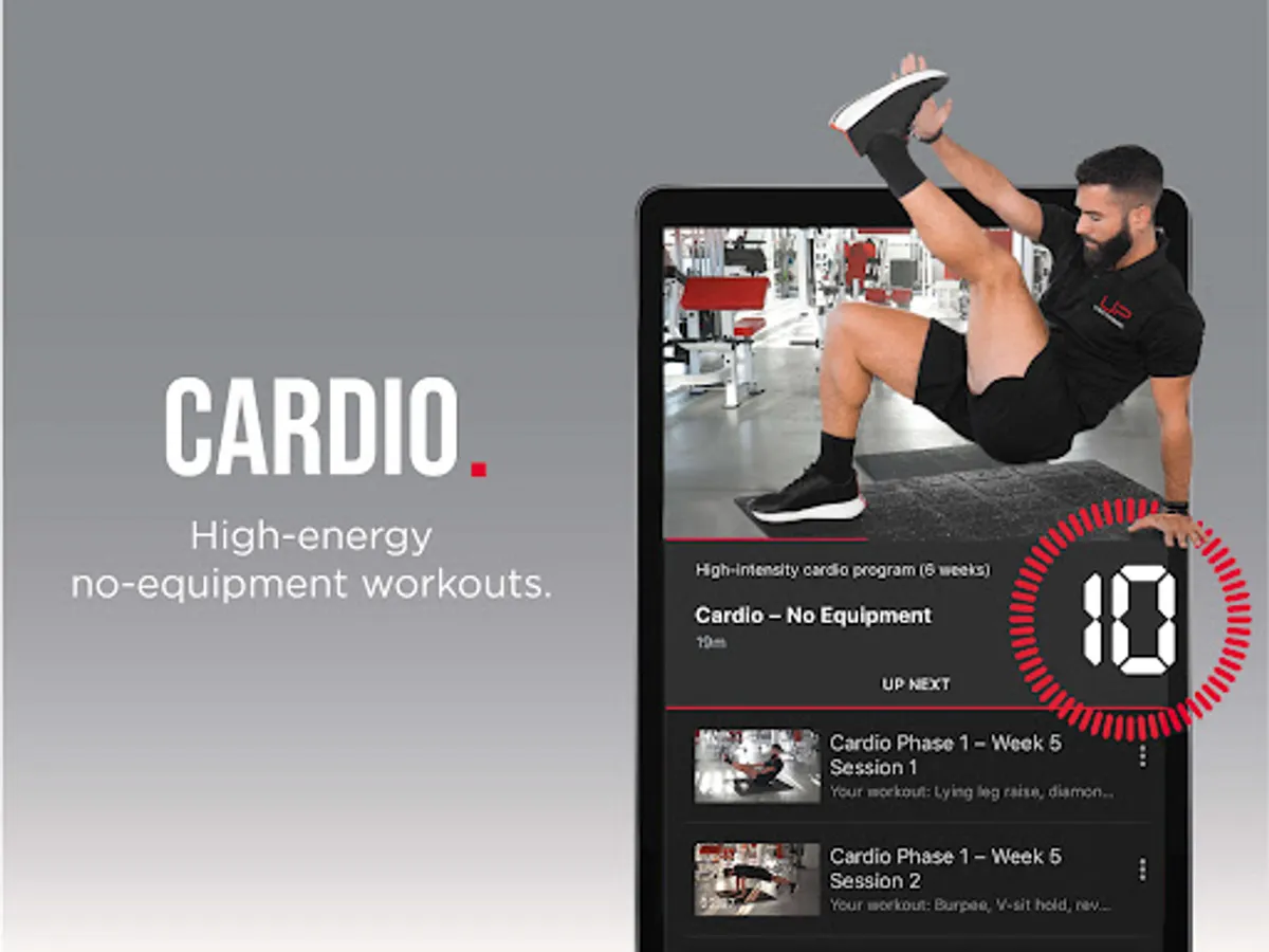 BODYWEIGHT CARDIO SESSIONS – Fire up your motivation working out with your trainer on screen.