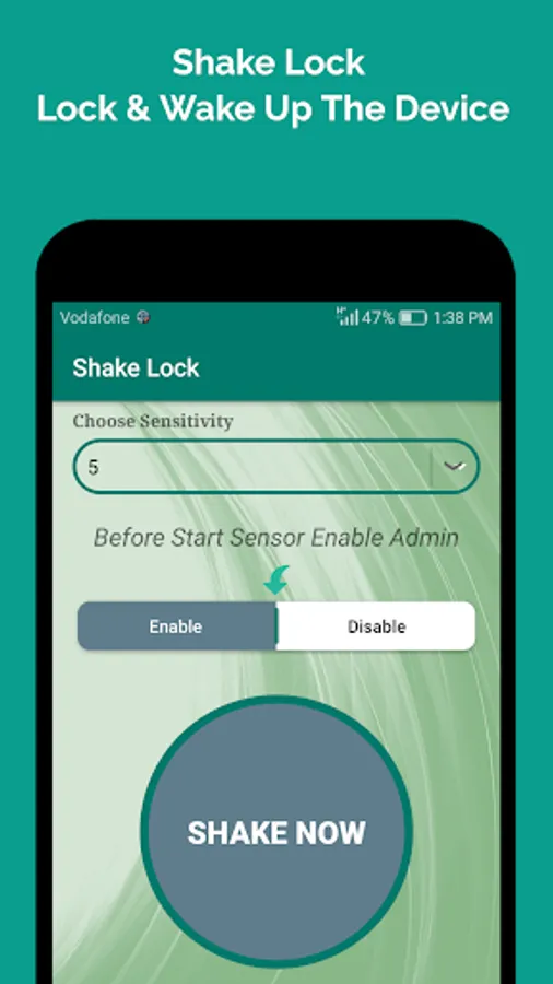 ★Note★ This app uses the Device Administrator permission (ShakeLock and WaveLock) : We will ask you to grant this permission in the app in a very clear way so that the app will be able to lock your device and nothing more .