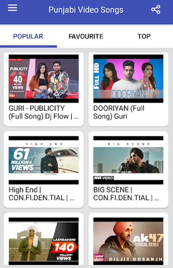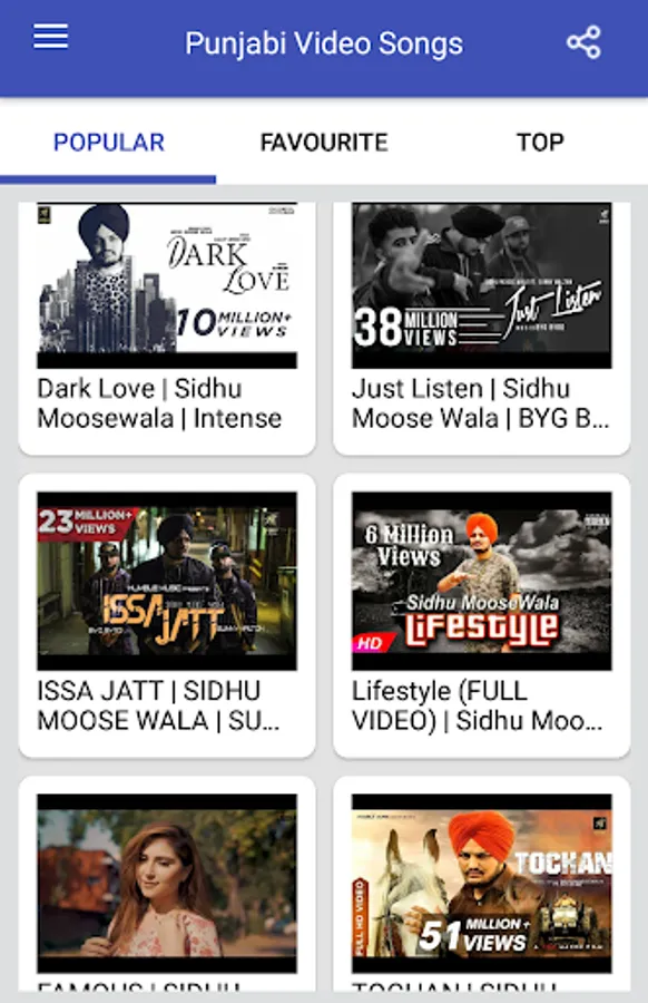 Punjabi Video Songs application has largest collection all category videos like Sidhu Moosewala Songs, GURI Songs, Diljit Dosanjh Songs, AMMY VIRK Songs, Amrit Maan Songs, MandyTakhar Songs, Neeru Bajwa Songs, Parmish Verma Songs, Sharry Mann Songs, Mankirt Aulakh Songs, Dilpreet Dhillon Songs, Sara Gurpal Songs, Garry Sandhu Songs, Happy Raikoti Songs, Jassi Gill Songs, Tarsem Jassar Songs, Mannat Noor Songs, Guru Randhawa Songs, Honey Singh Songs, Babbu Maan Songs and many other songs of different singers.