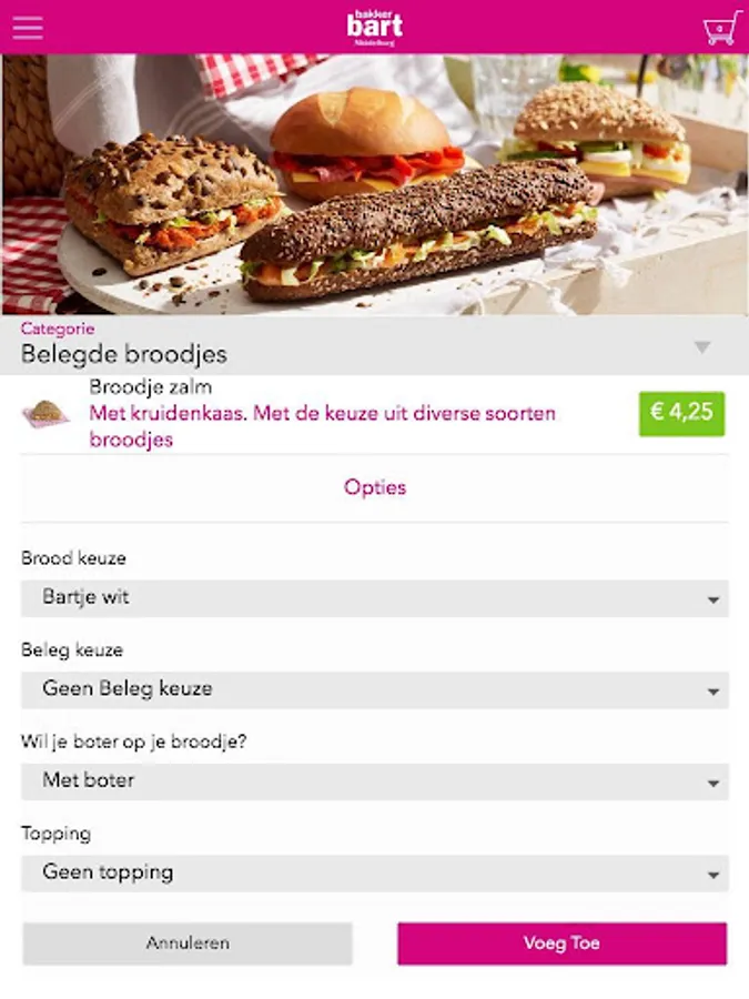 De Bakker Bart middelburg app is designed to be able to place orders easily and quickly by means of a simple menu. In the menu you can choose to include popular dishes, but you can also draw up a menu.