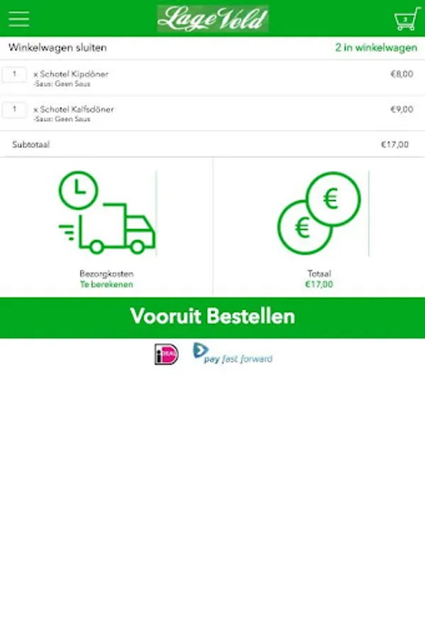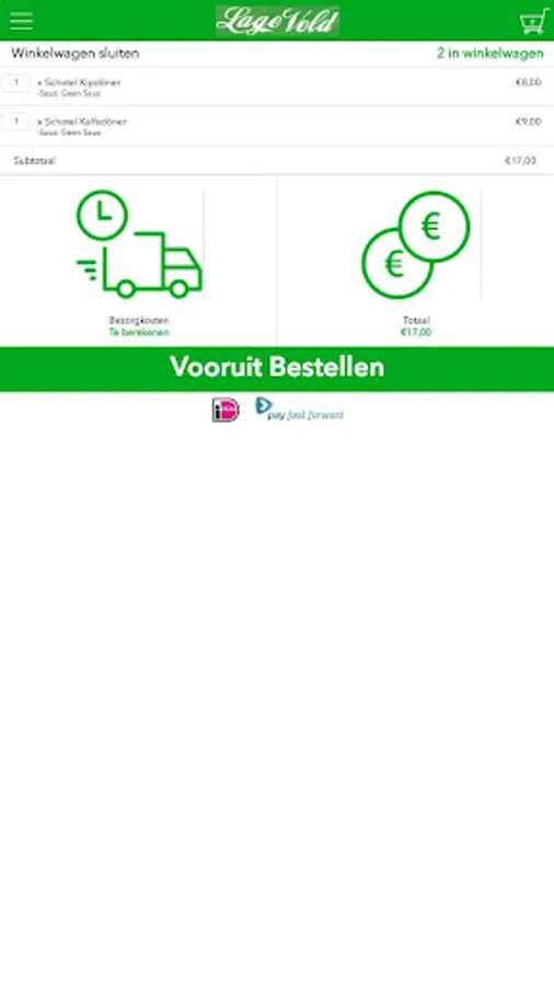 You can safely and easily with your mobile to pay with iDEAL or natural cash at the door.