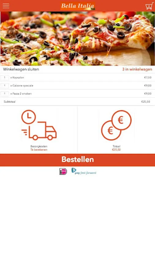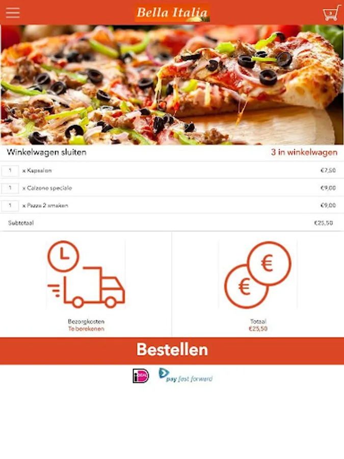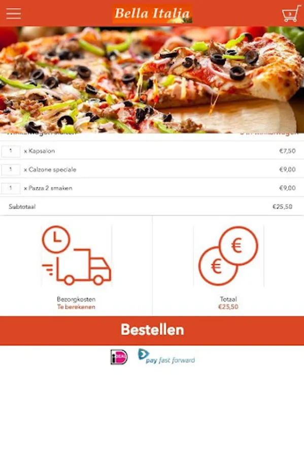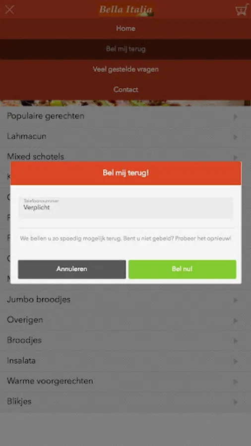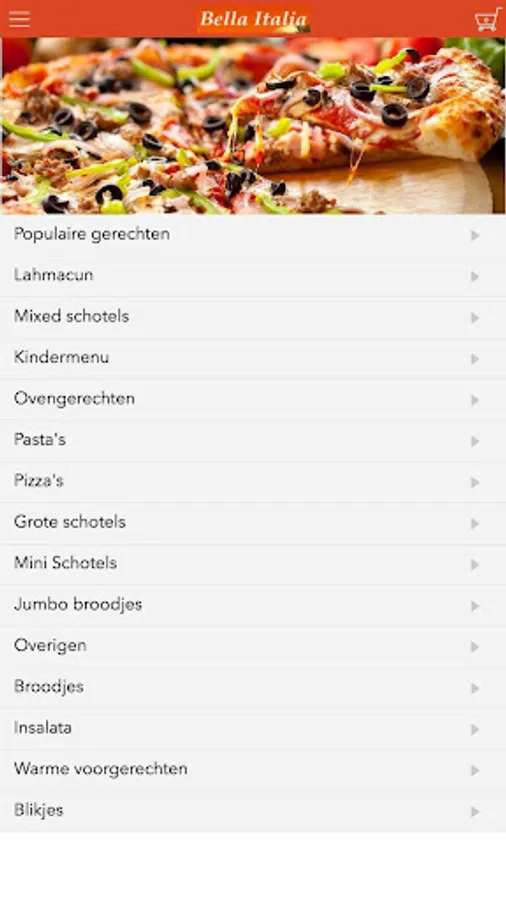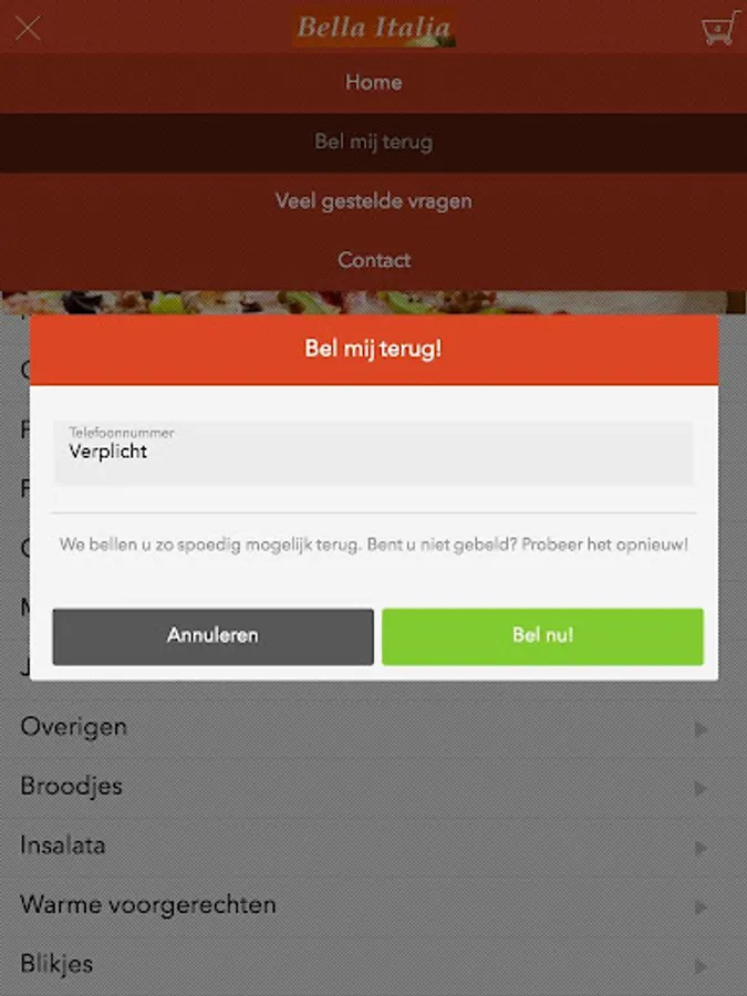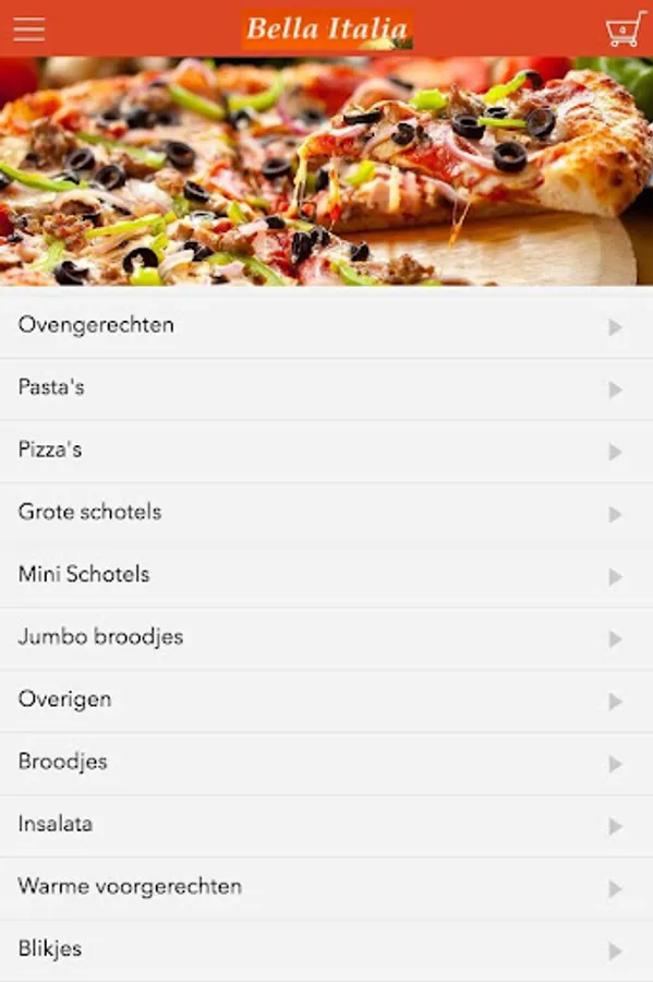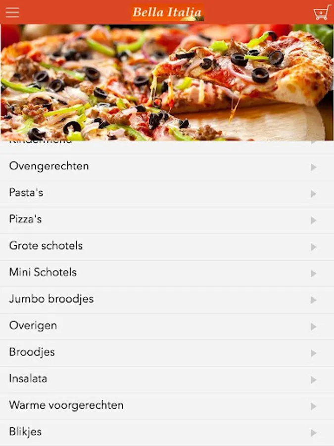 The Bella Italia Hellendoorn app is designed to be able to place orders easily and quickly by means of a simple menu. In the menu you can choose to include popular dishes, but you can also draw up a menu.