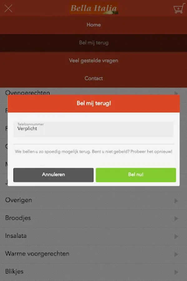 Do you have a question and / or comment on a particular dish and you want to be called back by us? You can do this by pressing the '' Call me back 'button and you will be free of charge called back by us!