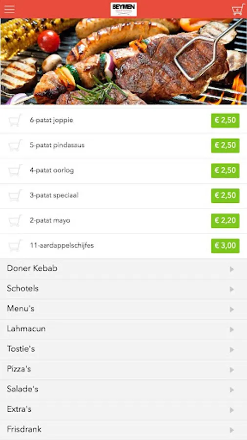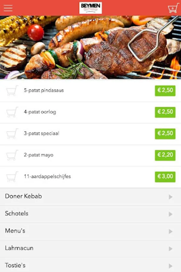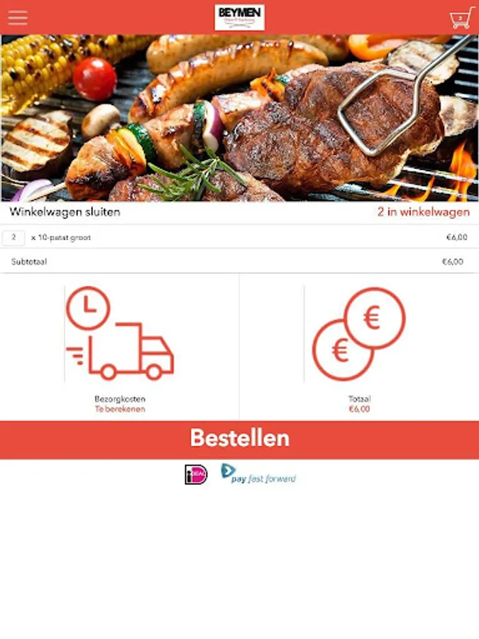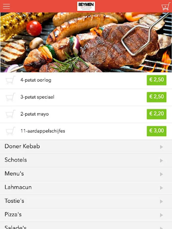 The Beymen Groningen app is designed to be able to place orders easily and quickly by means of a simple menu. In the menu you can choose to include popular dishes, but you can also draw up a menu.
