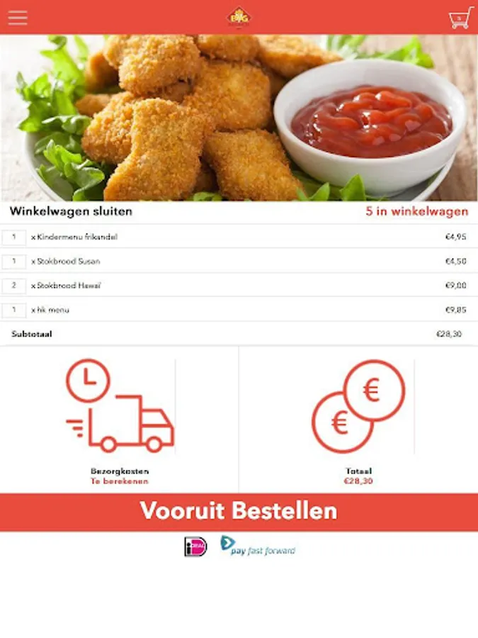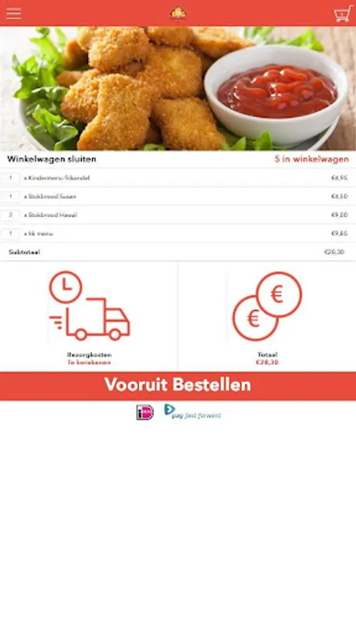 In the order history you can see what you have previously ordered from our restaurant. If you click the order button the order will automatically end up in the cart. So you do not have to select all again and you can immediately place your order.